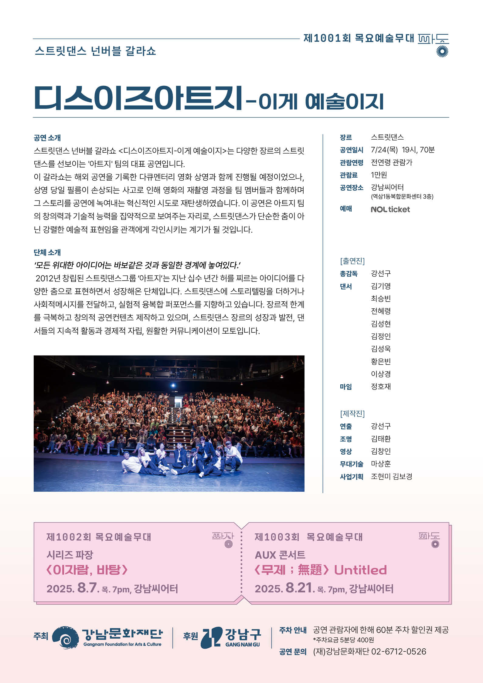![[제1001회 목요예술무대] 스트릿댄스 넌버벌 갈라쇼 「디스이즈아트지-이게 예술이지」 전자점자뷰어보기](/assets/images/common/braille_btn.png)