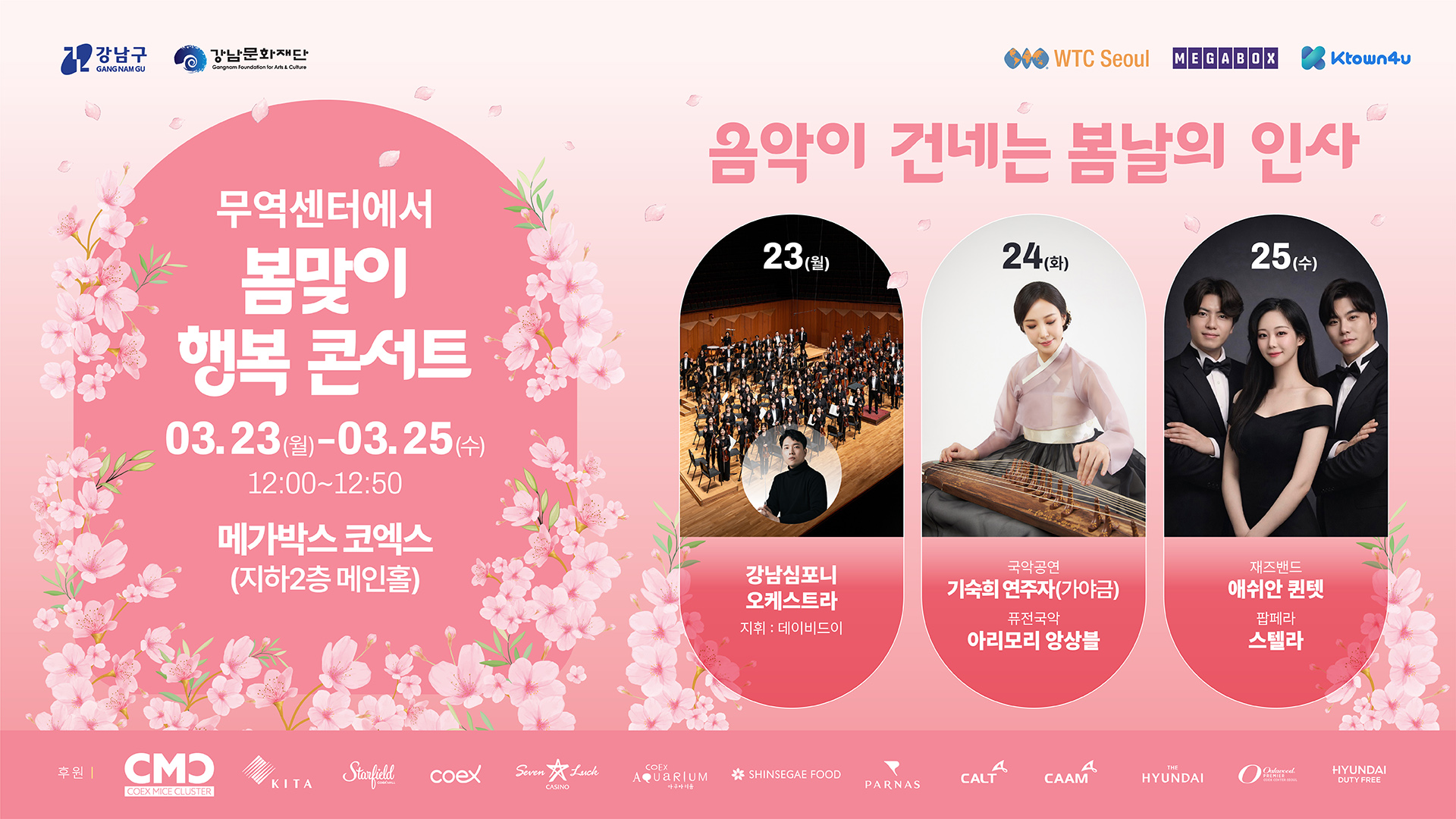 강남구에서는 강남구민이 일상 가까이에서 음악으로 쉼과 여유를 느낄 수 있도록 <2026 봄맞이 행복콘서트>를 개최합니다.