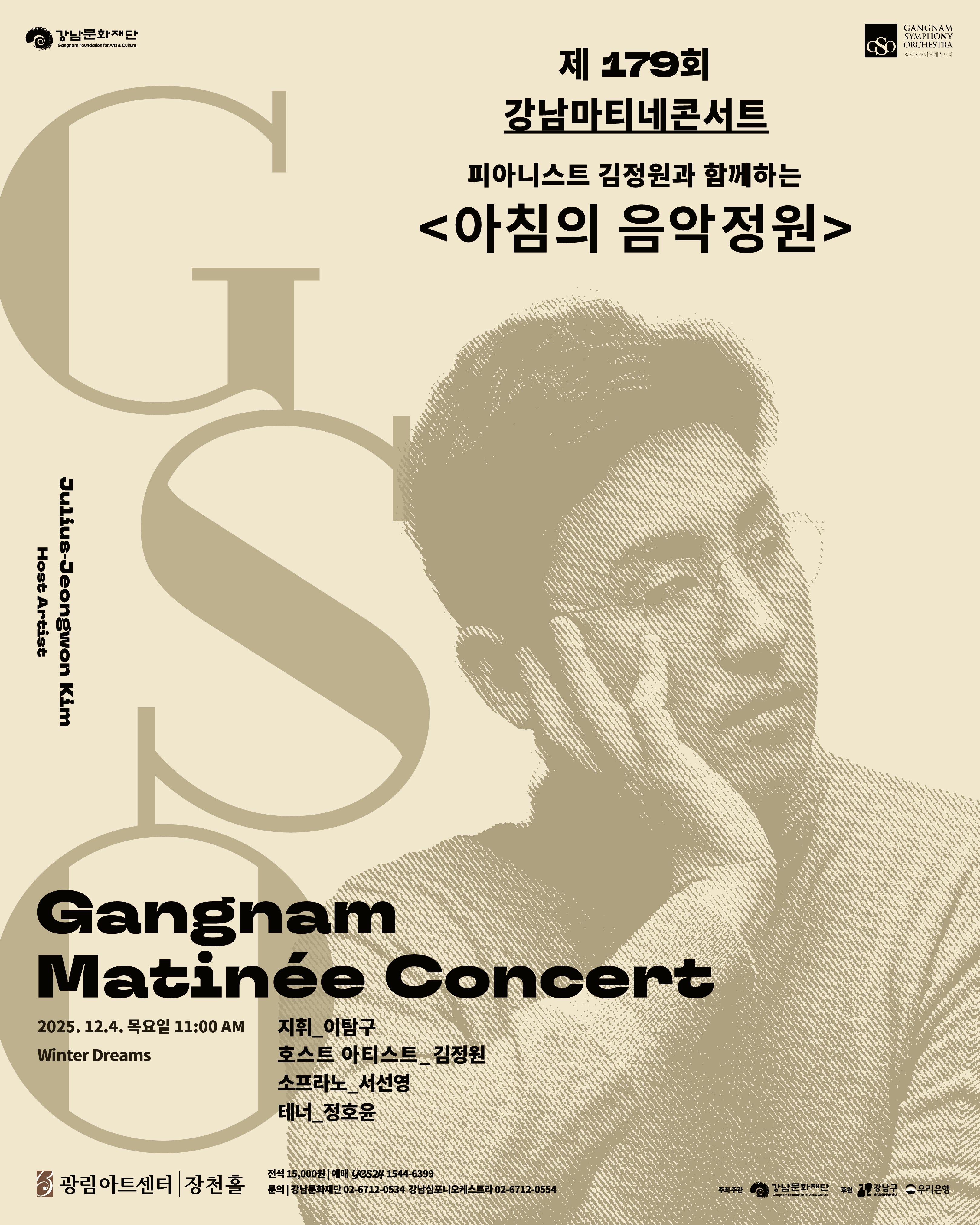 제179회 강남마티네콘서트│피아니스트 김정원과 함께하는 아침의 음악정원 2025.12.4.(목), 11:00 | 광림아트센터 장천홀 -