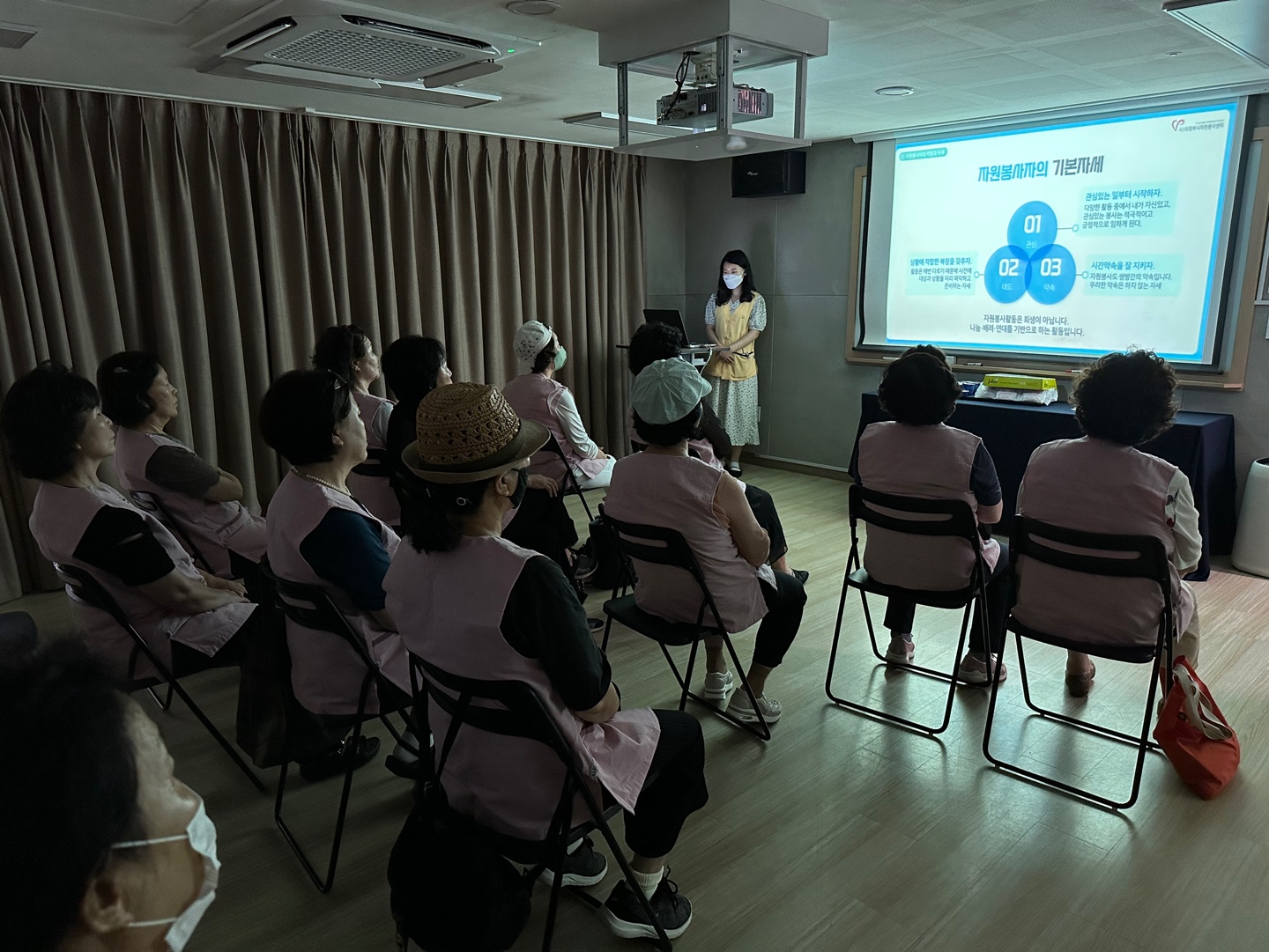 이날 발족한 라인댄스 나누미단, 숟가락난타 나누미단은 발대식을 하며 자원봉사 기초교육과 함께