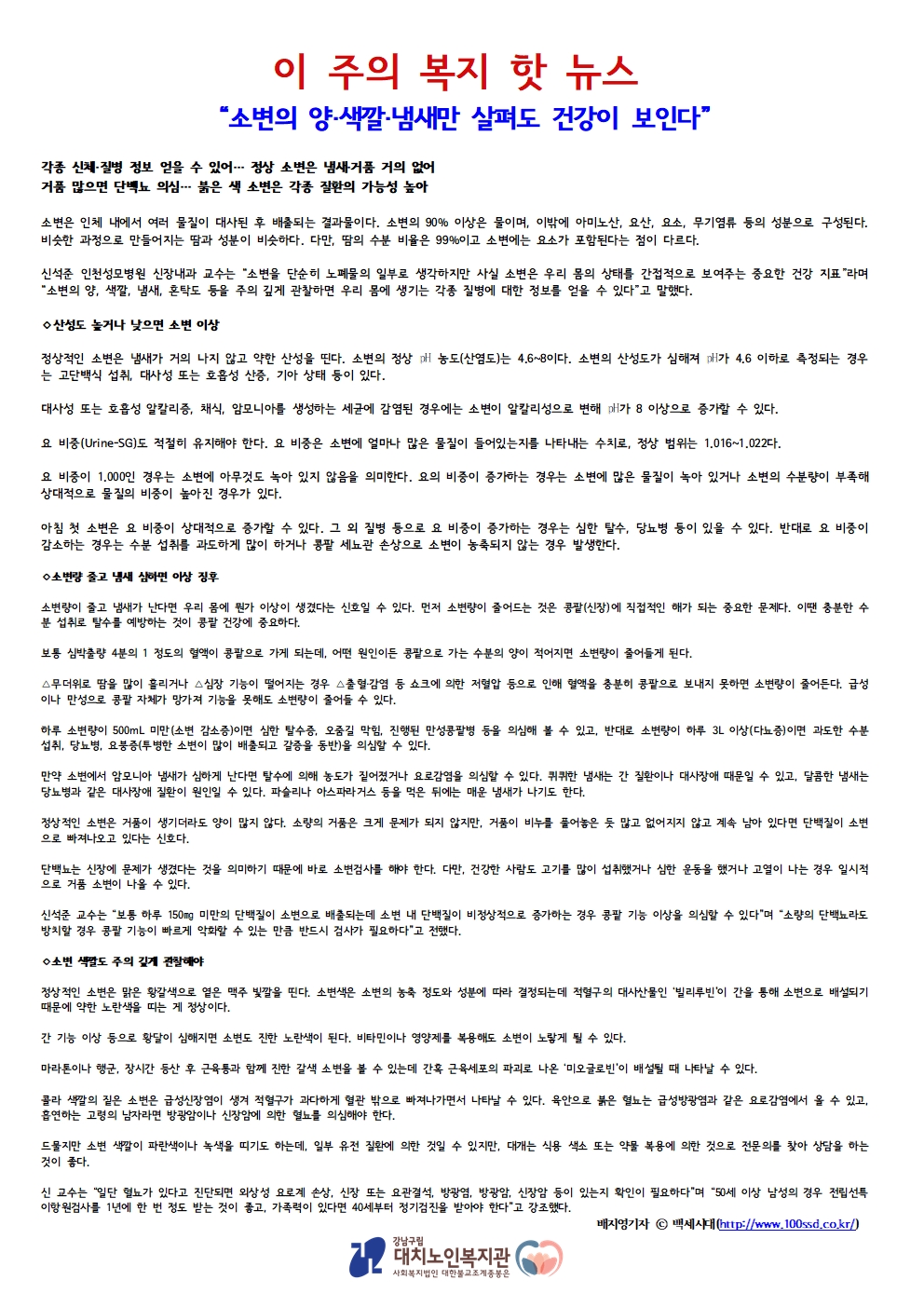 [복지뉴스] 소변의 양, 색깔, 냄새만 살펴도 건강이 보인다