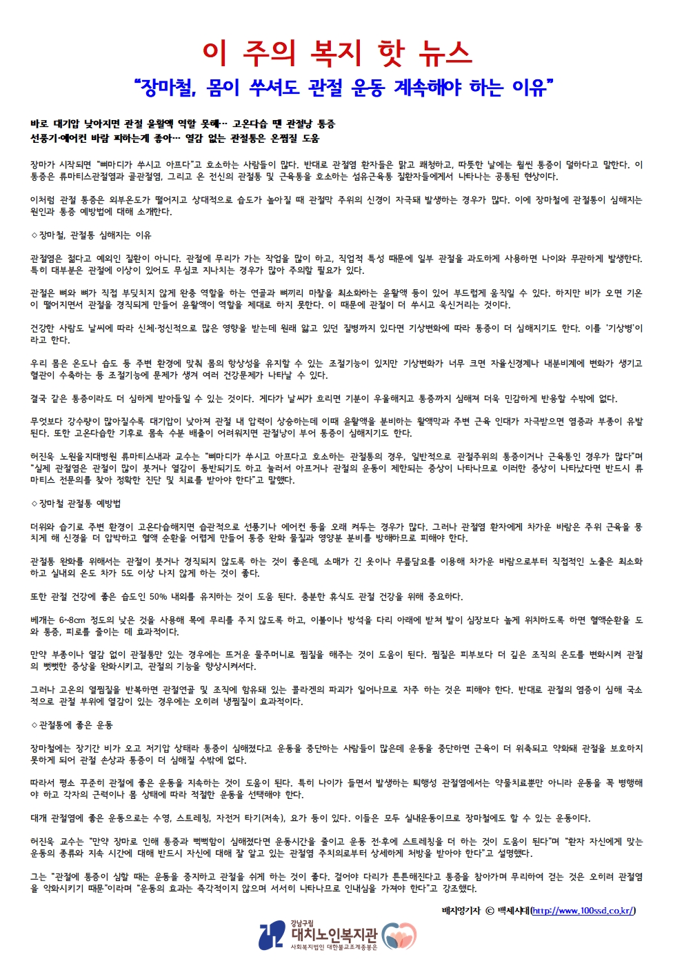 [복지뉴스] 장마철, 몸이 쑤셔도 관절 운동 계속해야 하는 이유