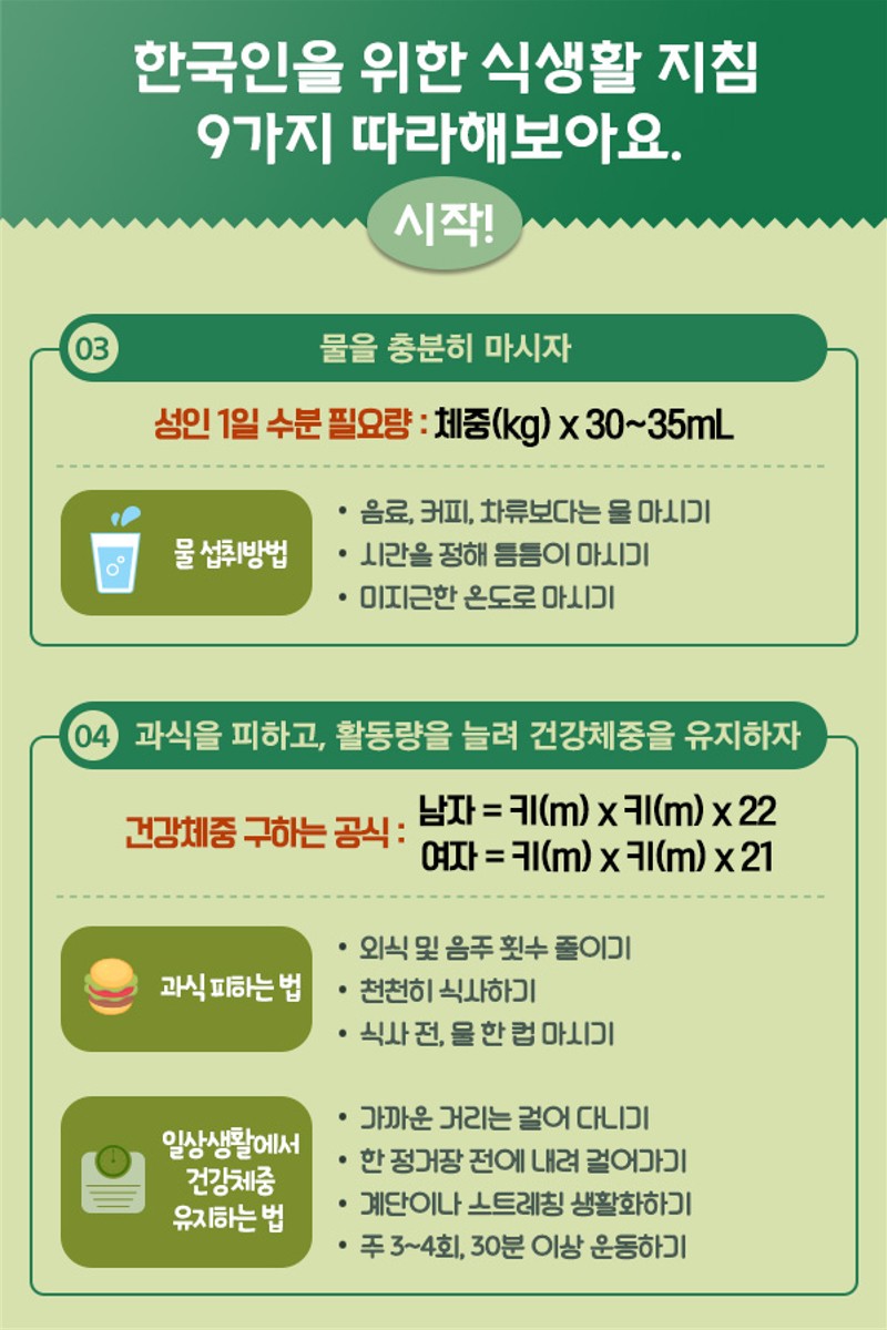 [영양정보] 한국인을 위한 식생활 지침 (9가지지침)