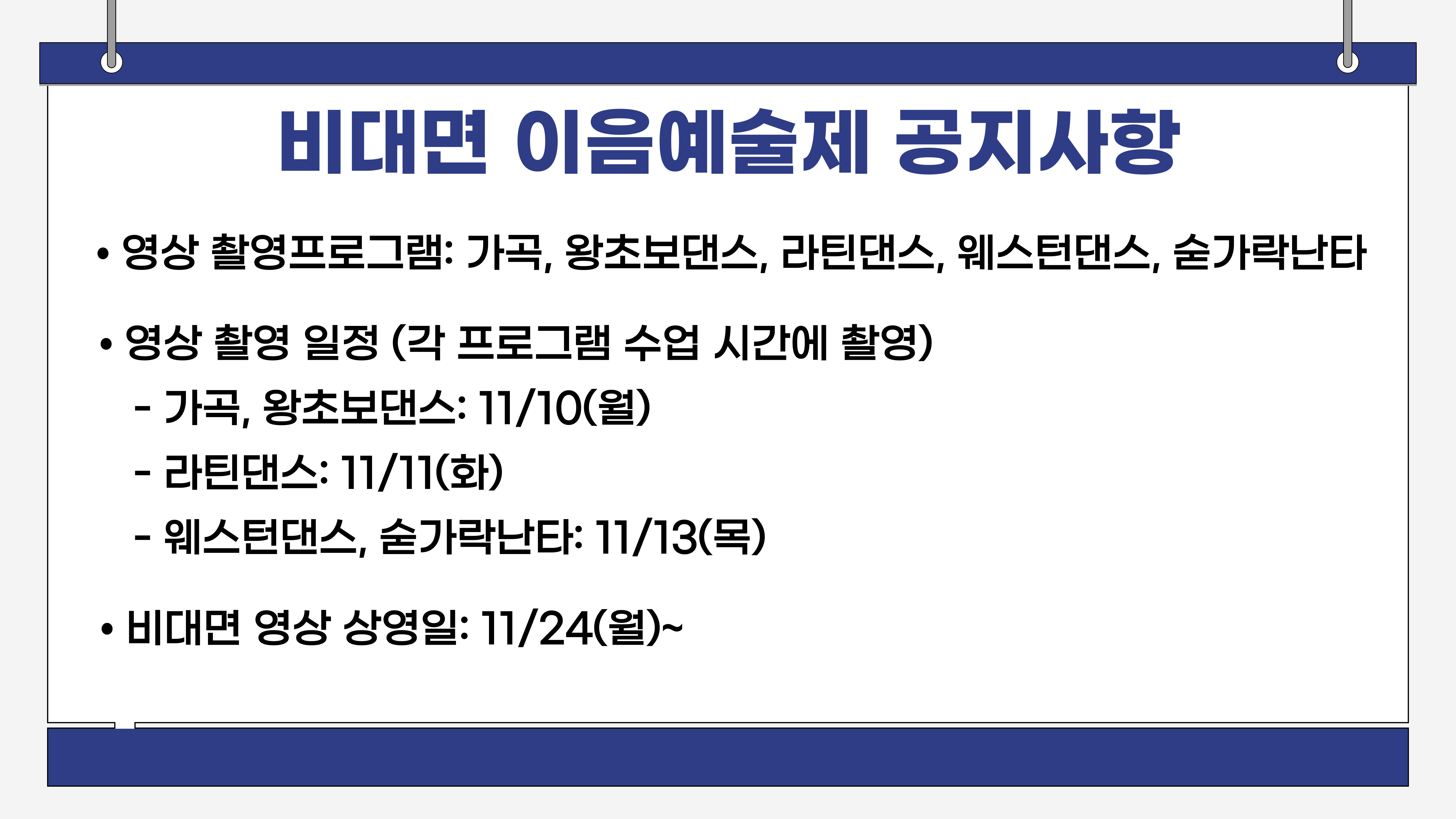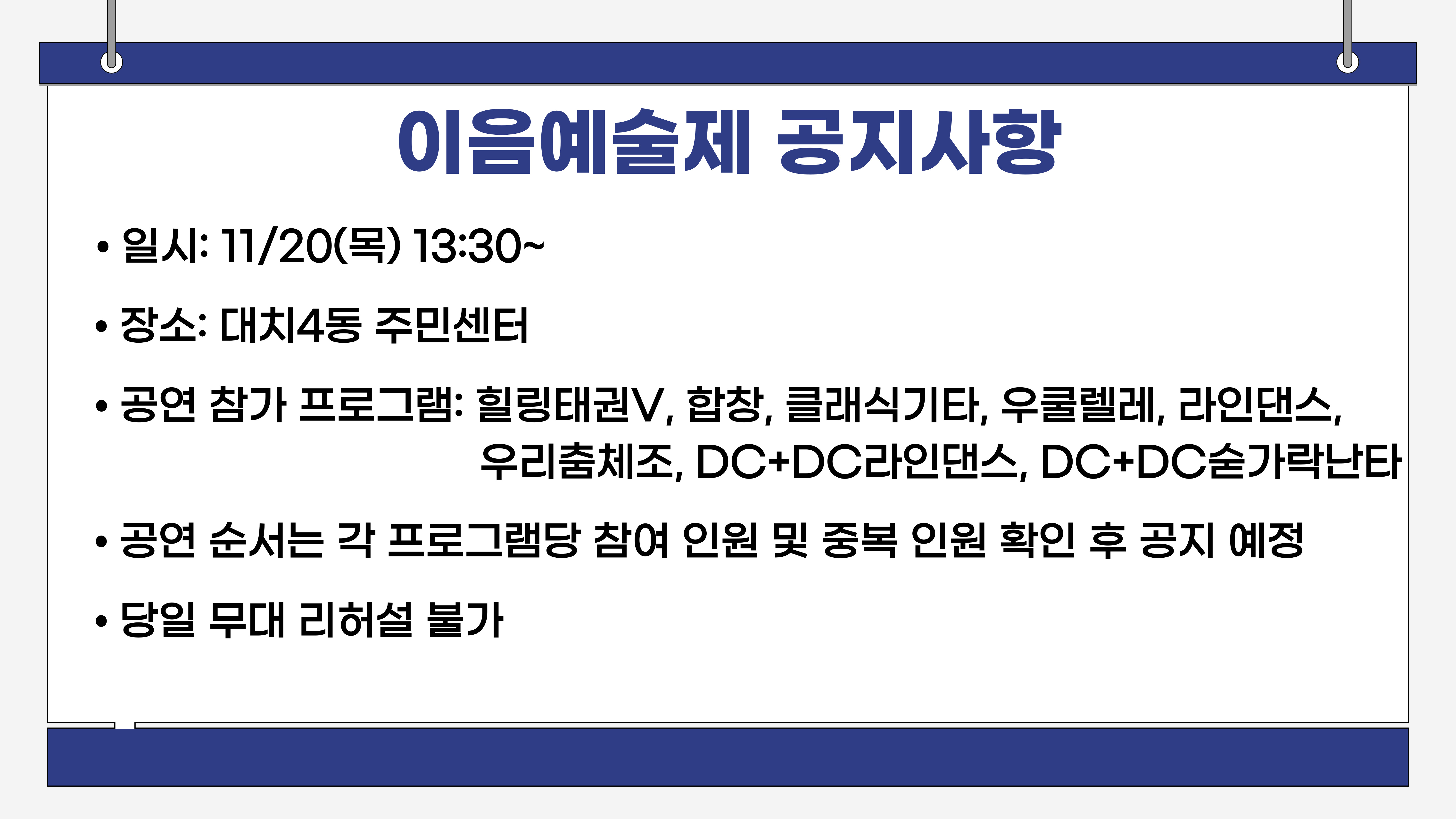 [공지] 안내사항 및 공지사항(이음예술제, 수강신청 등)