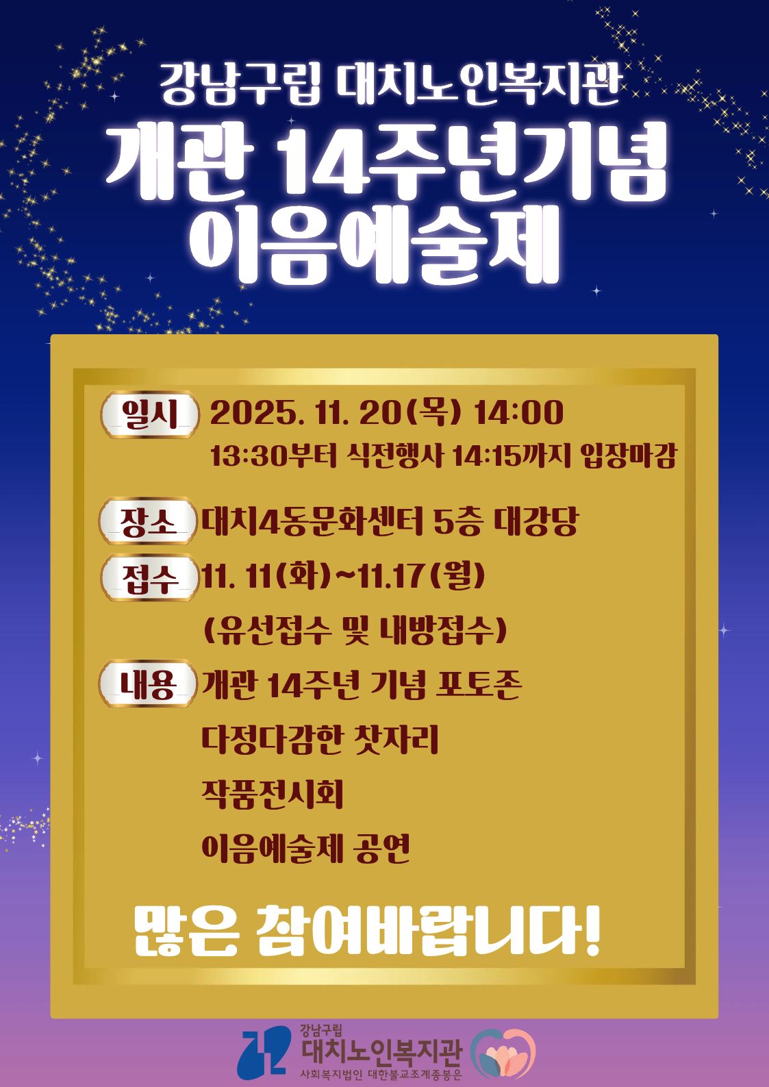 [복지] 대치노인복지관 개관 14주년 기념 이음예술제 홍보