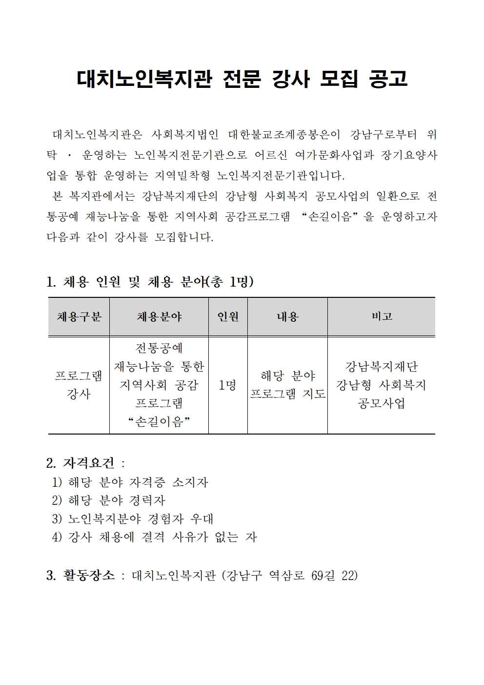 [복지] 강남복지재단과 함께하는 사회복지공동모금회지원사업 손길이음 전문강사 긴급채용