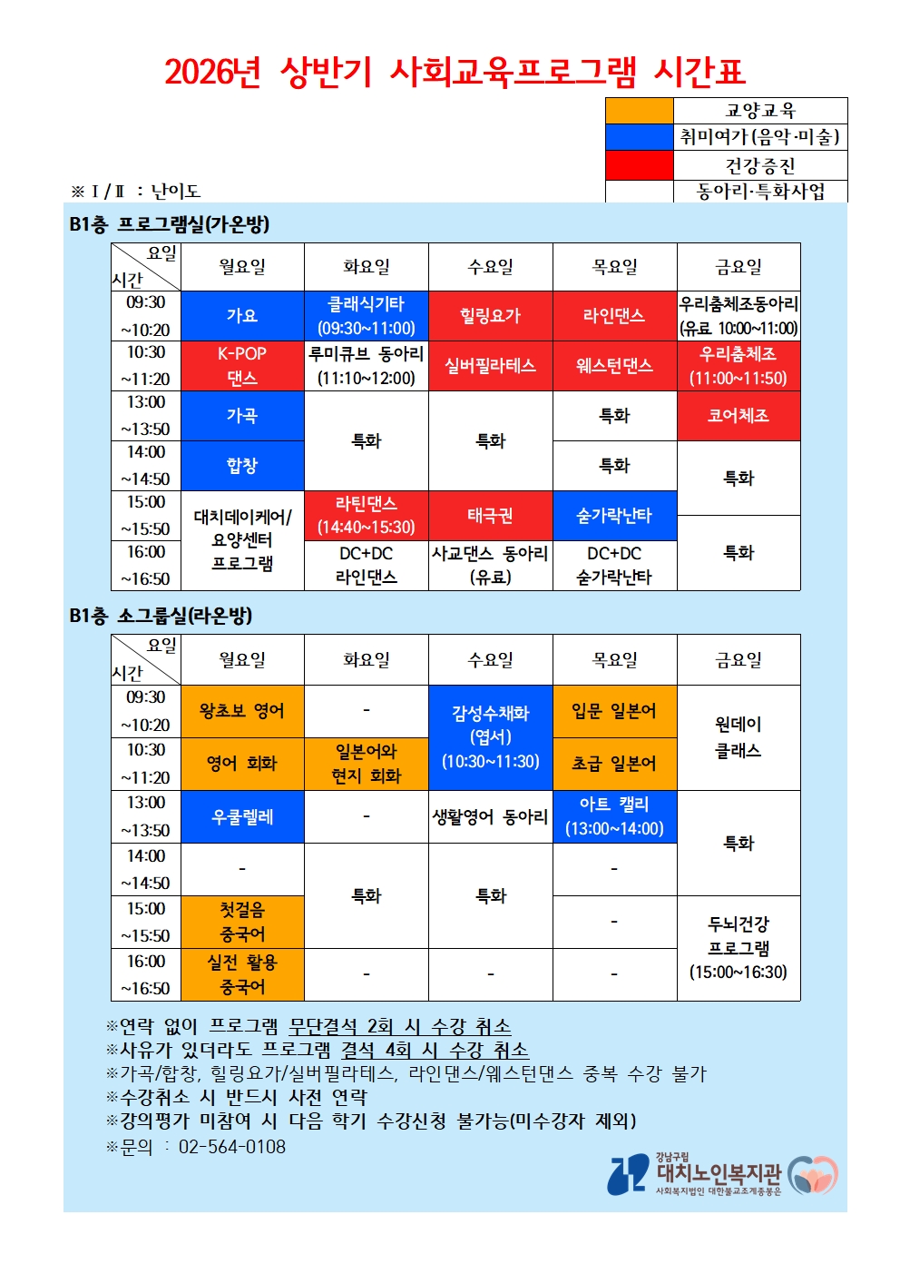 - 교양교육프로그램/취미여가프로그램/건강증진프로그램/정보화프로그램/운영관리