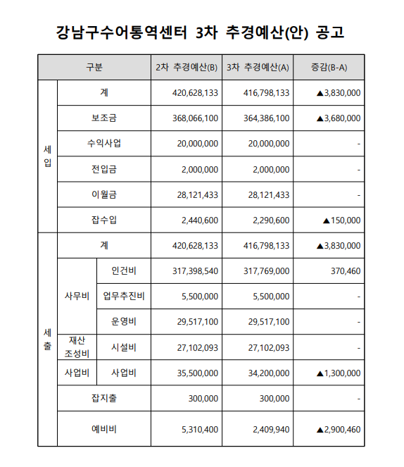 2025년 강남구수어통역센터 3차 추경예산(안) 공고