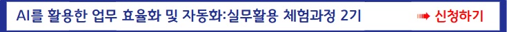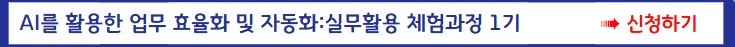 ※ AI를 활용한 업무 효율화 및 자동화: 실무활용 체험과정 1기/2기는 동일한 내용으로 진행됩니다.