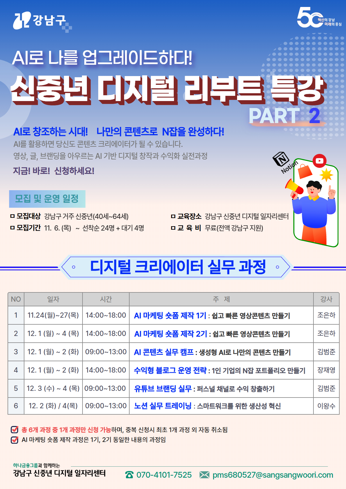 특강 [AI로 나를 업그레이드하다! 신중년 디지털 리부트 특강 PART2]에 초대합니다.
