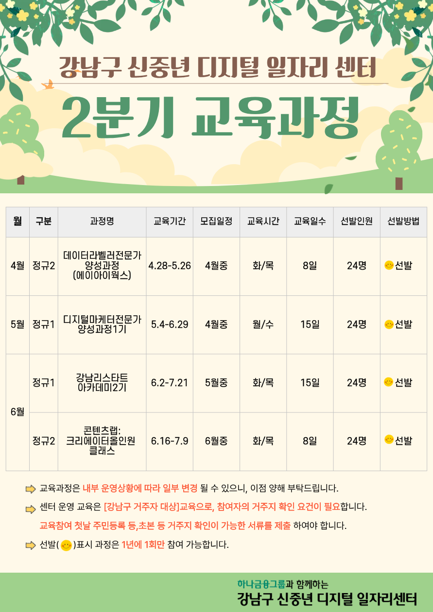 강남구 신중년 디지털 일자리센터 2분기 교육 일정 안내