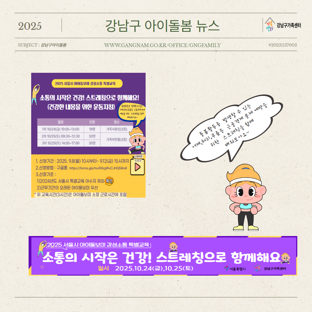 [강남구아이돌봄]2025 아이돌보미 감성소통 특별교육
