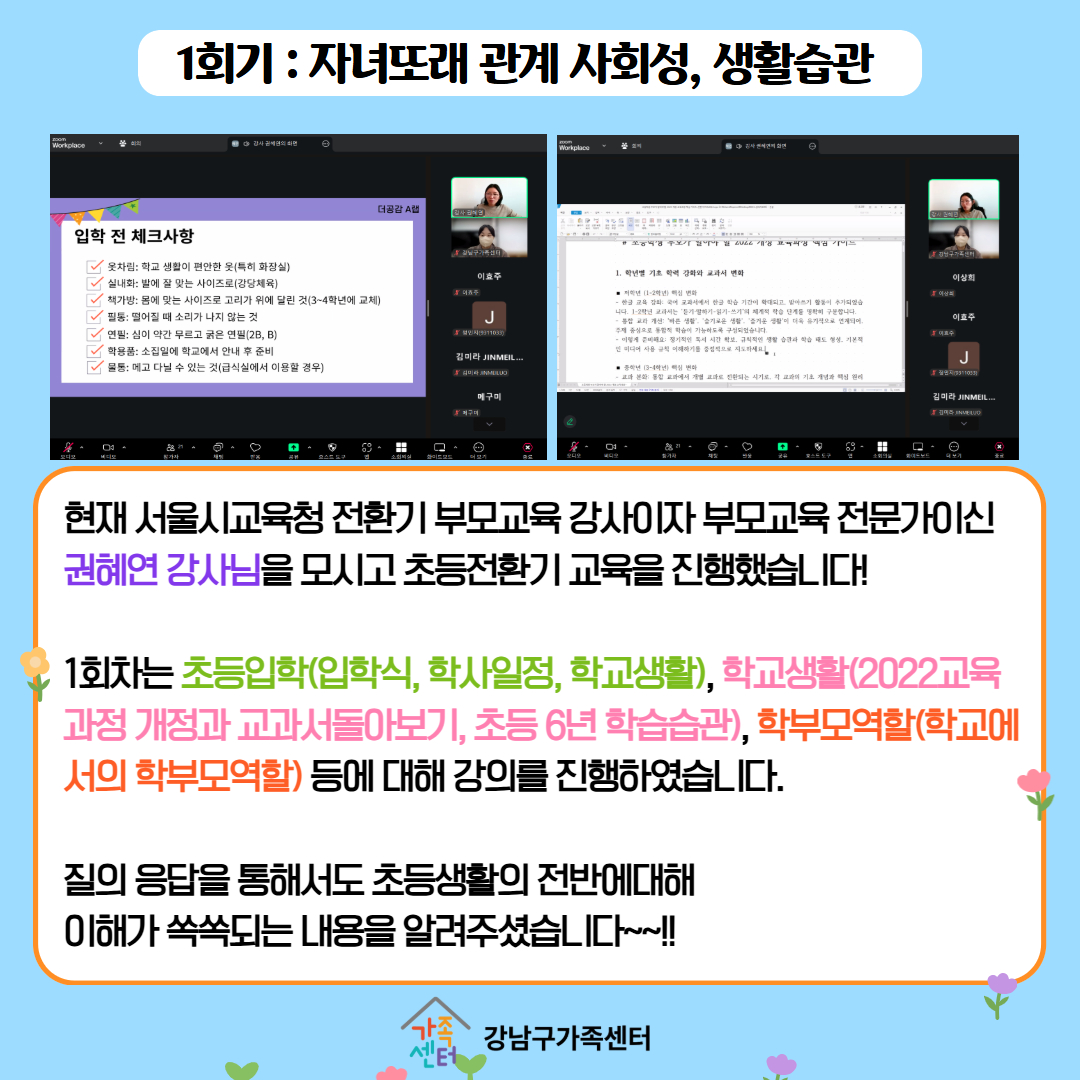 [전환기부모교육] 부모가먼저 준비하는 우리아이 초등입학