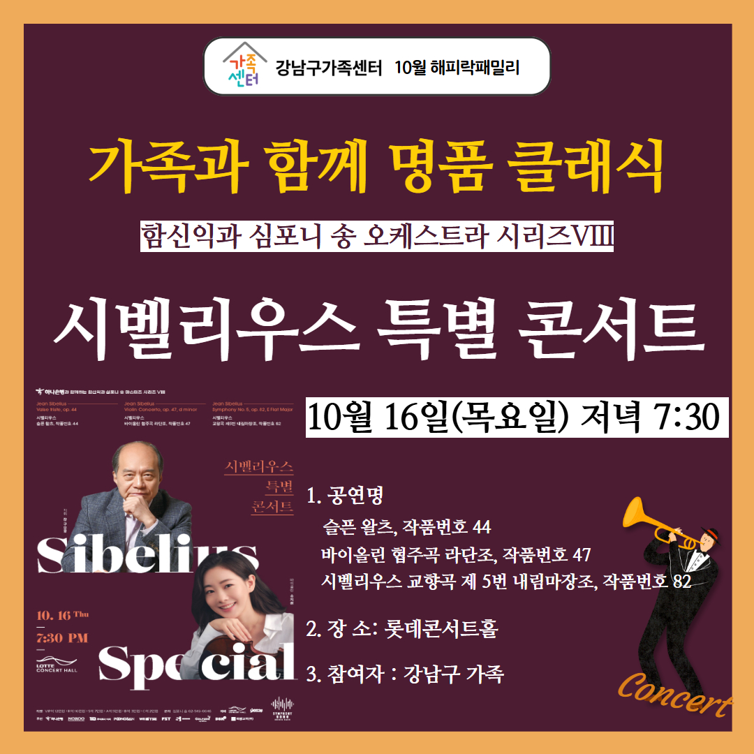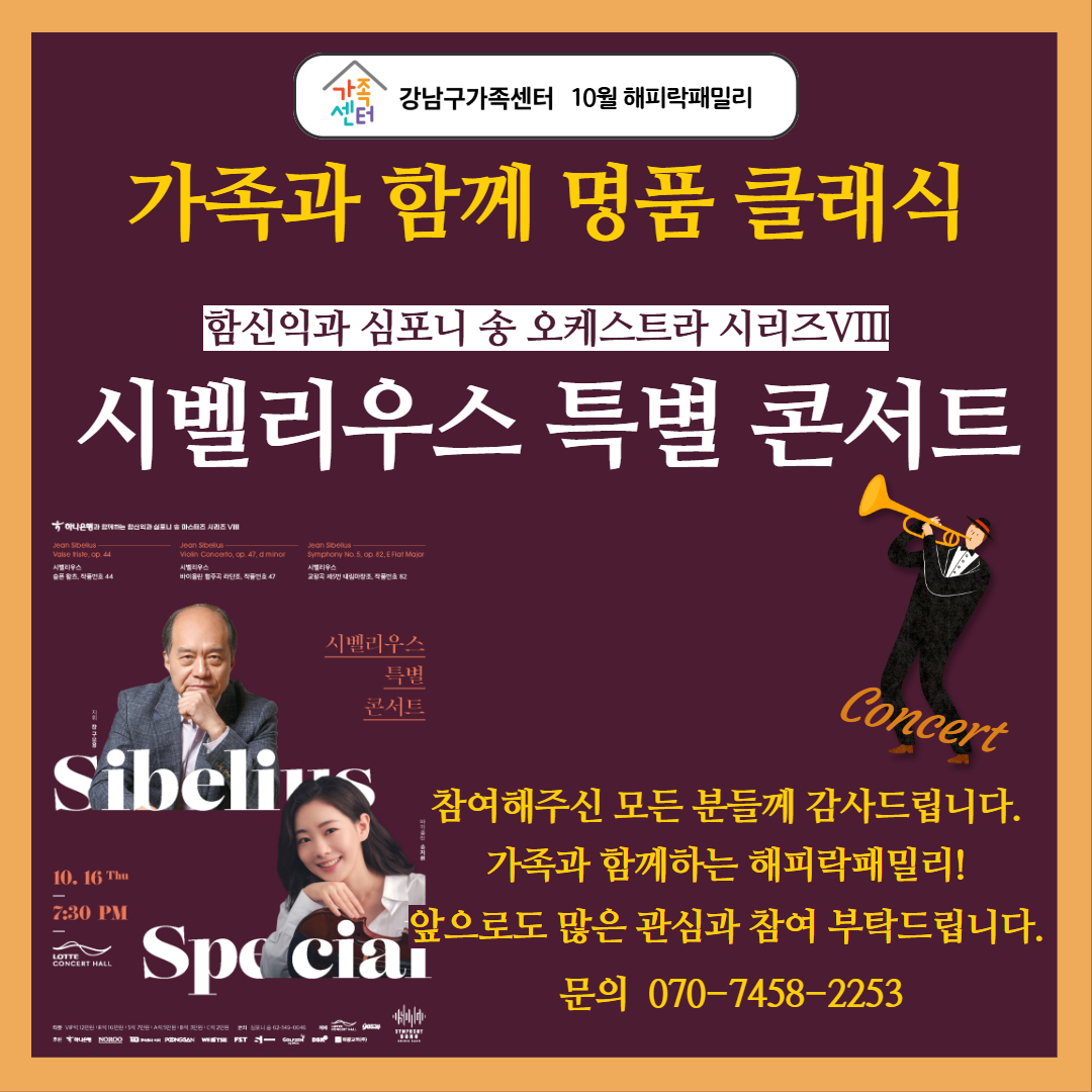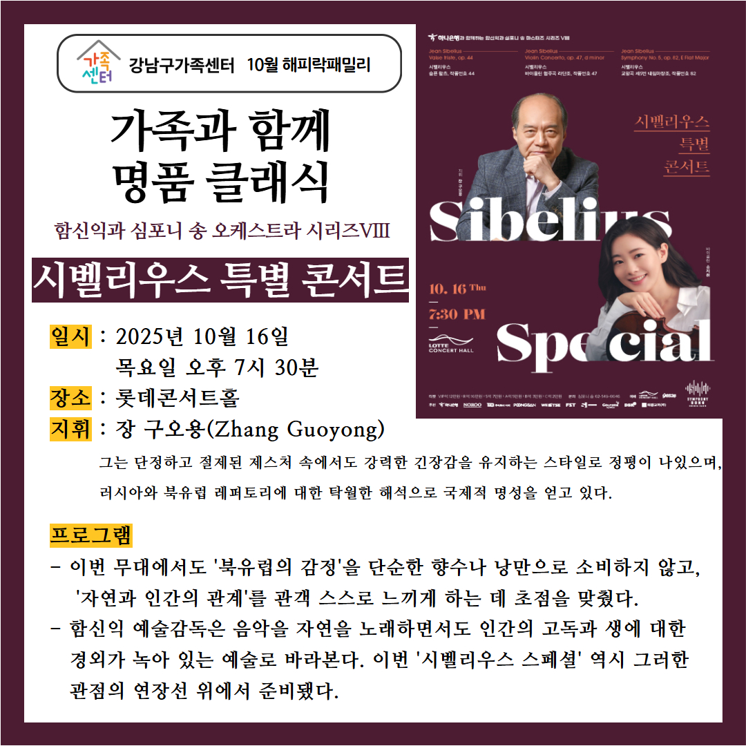 [해피락패밀리]가족과 함께 명품 클래식 가을편 -시벨리우스 특별 콘서트-