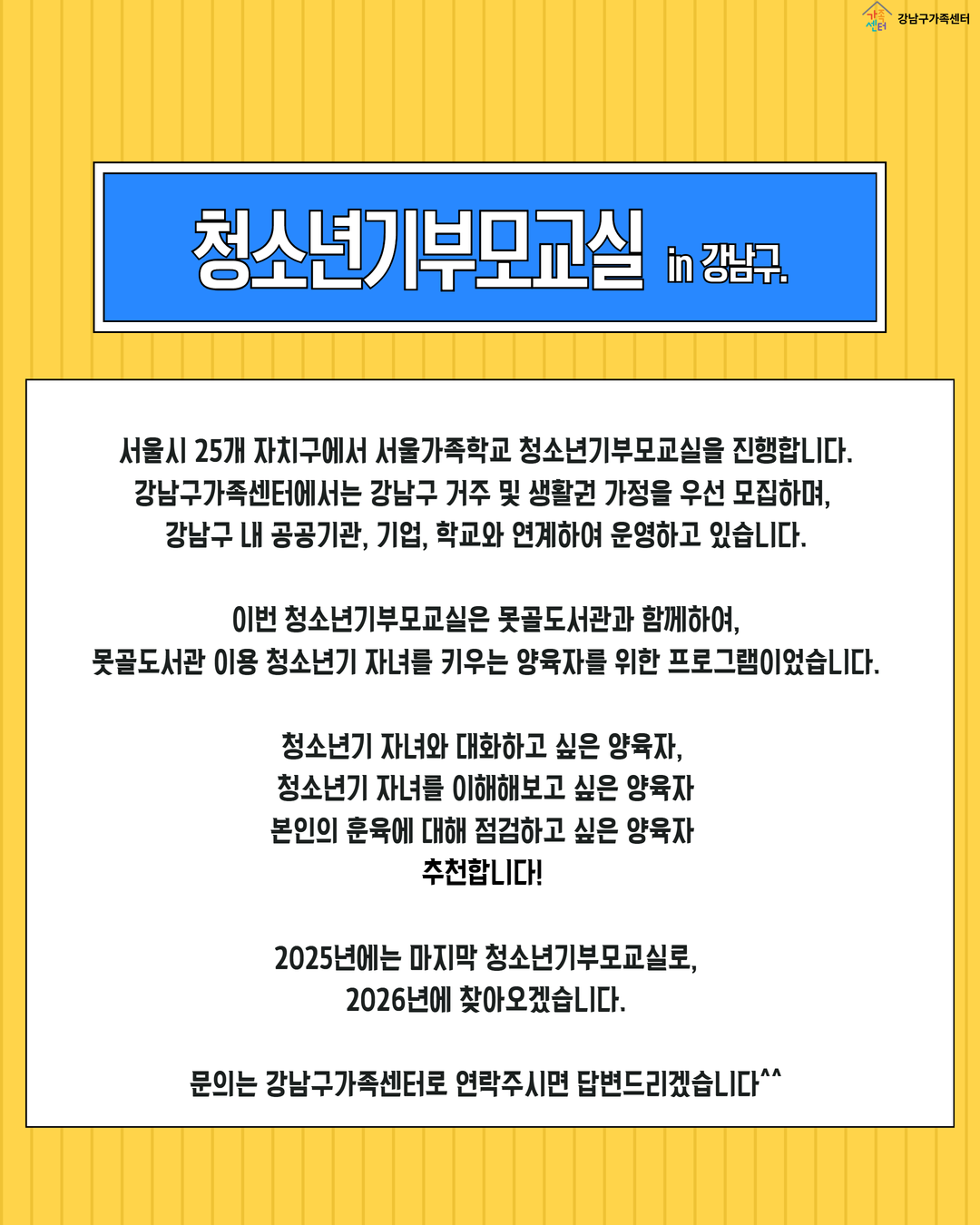 [서울가족학교 청소년기부모교실] 청기백기 w. 못골도서관