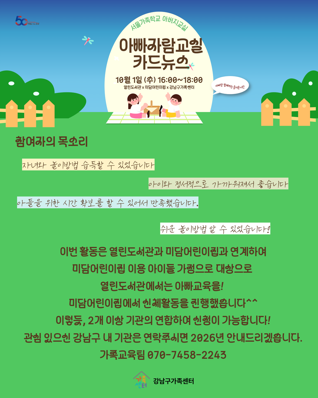 [서울가족학교 아버지교실] 아빠자람교실(w.열린도서관, 미담어린이집)