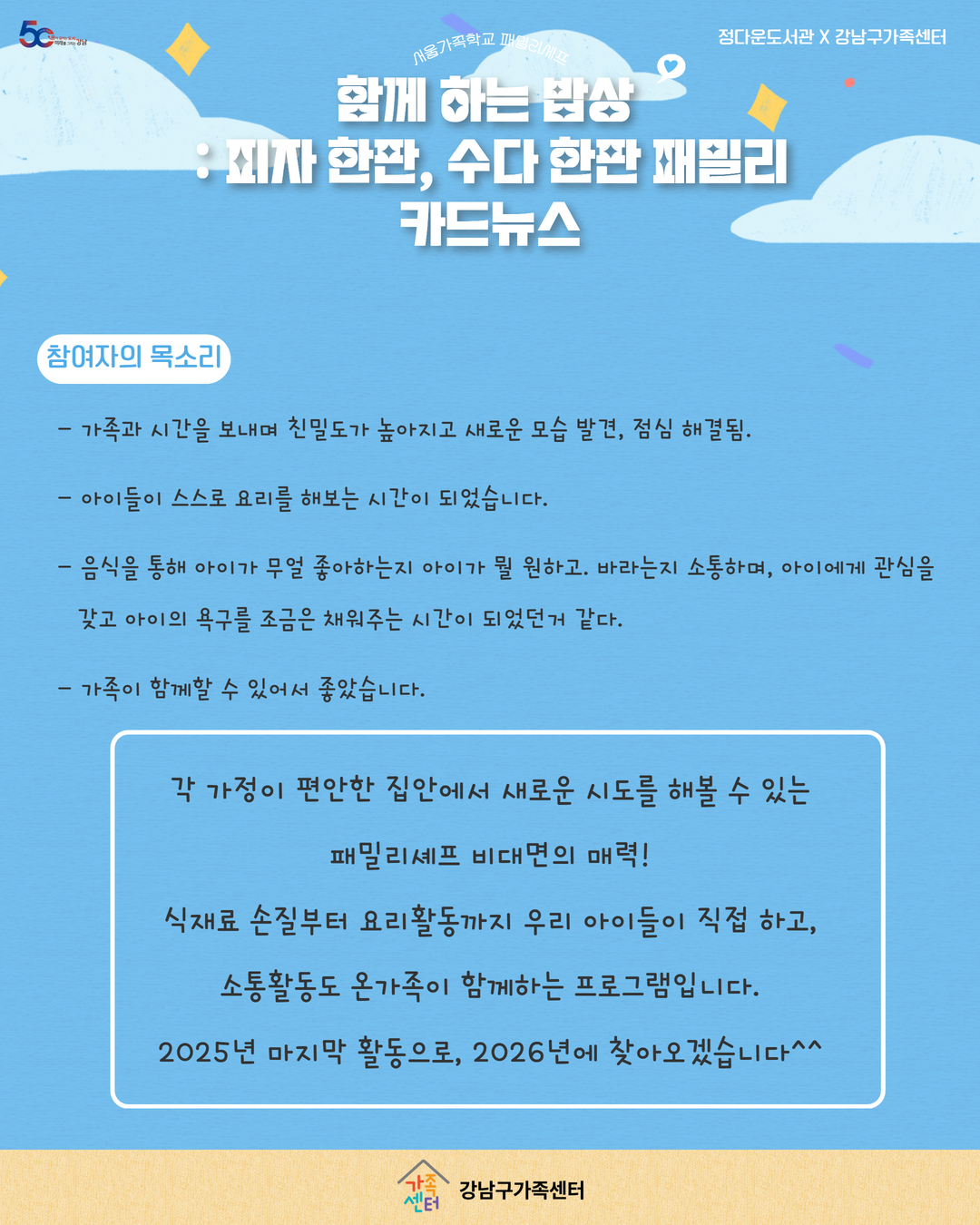 [서울가족학교 패밀리세프] 함께 하는 밥상 : 피자 한판, 수다 한판 패밀리(w. 정다운도서관)