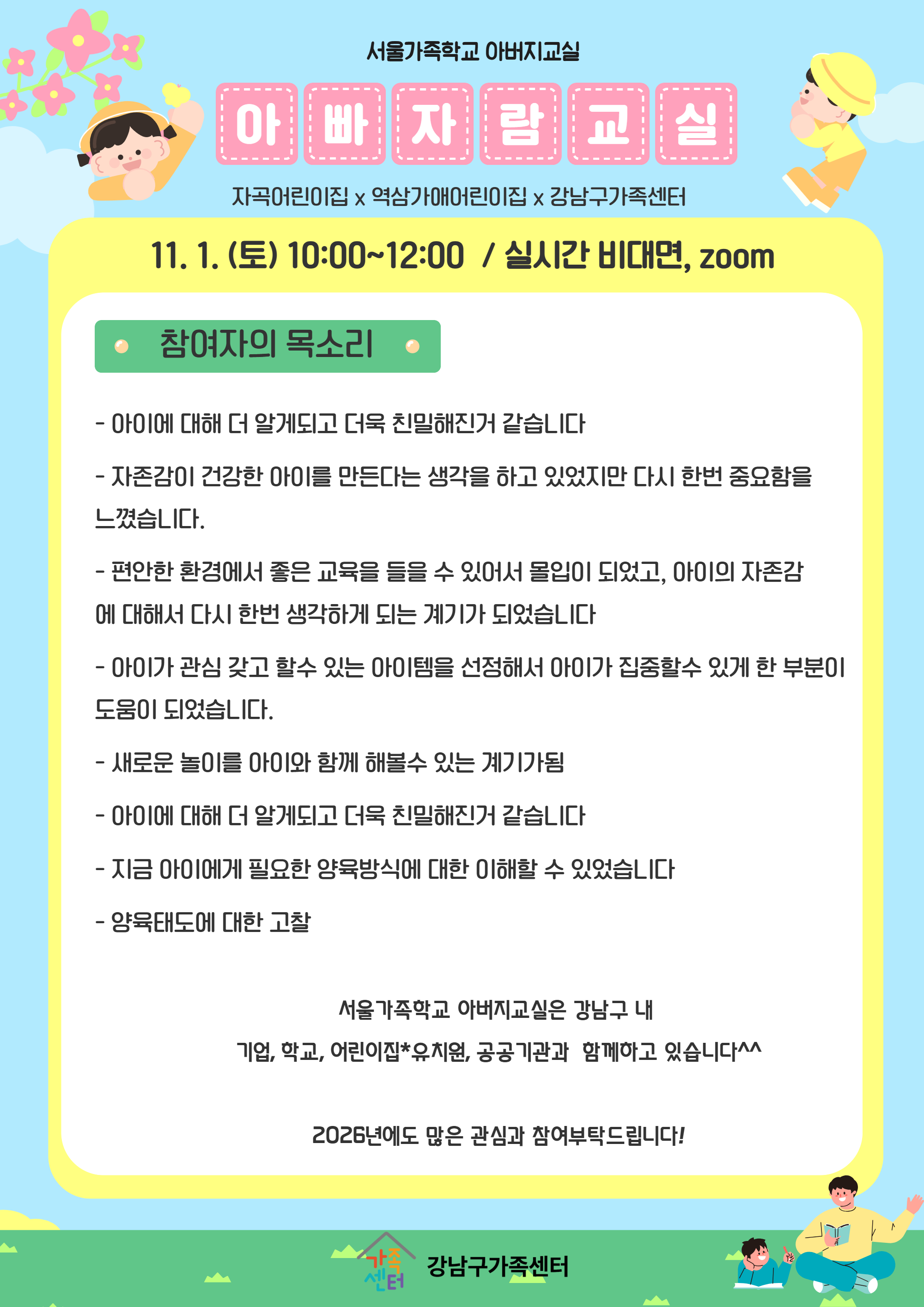 [서울가족학교 아버지교실] 아빠자람교실(w.자곡어린이집, 역삼가애어린이집)
