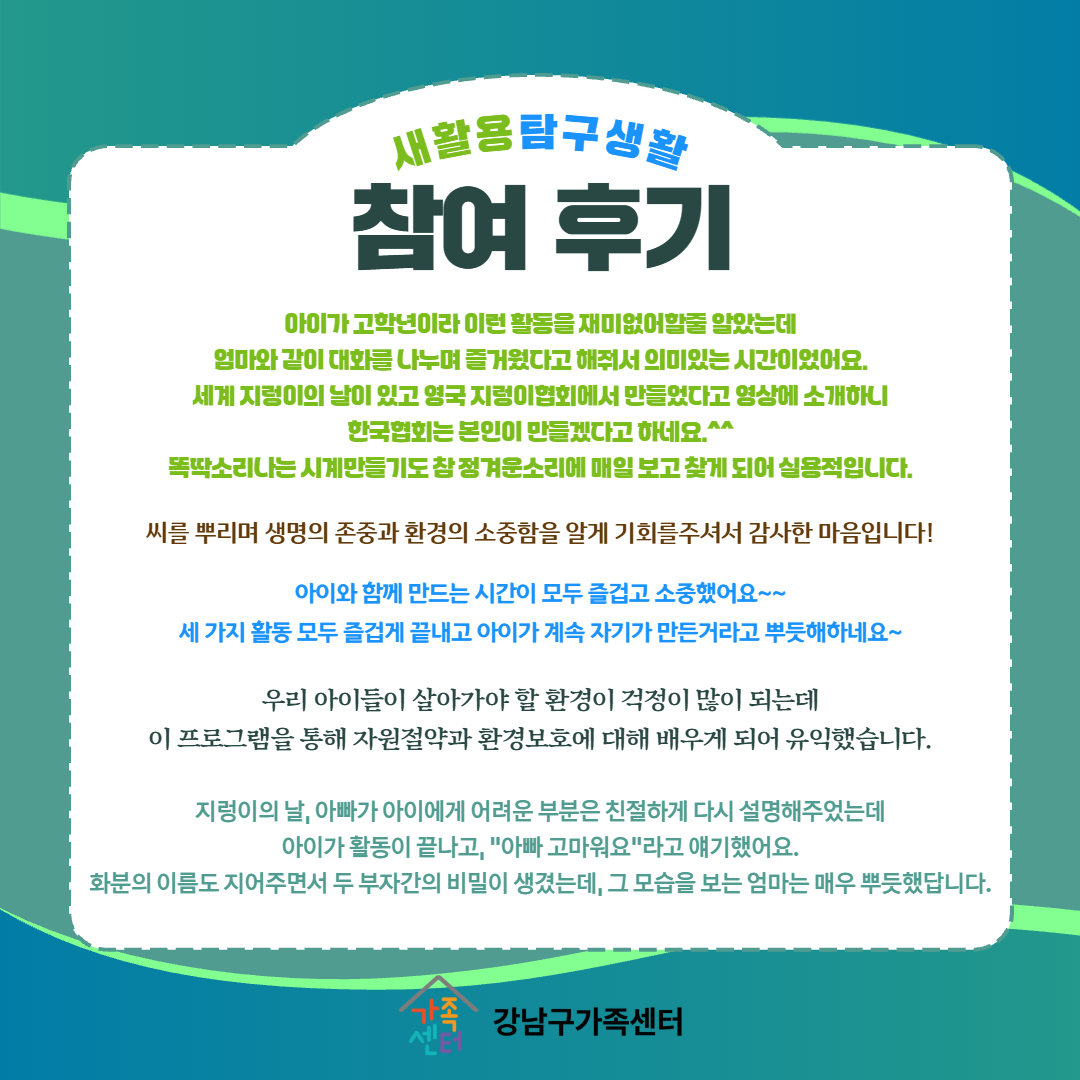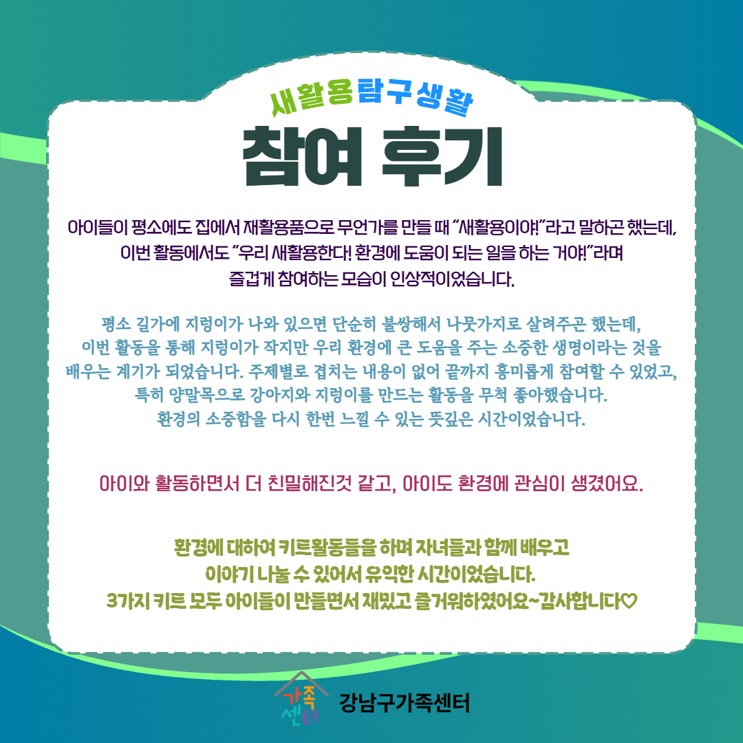 [에코플러스]가족체험 새활용 탐구생활(8월~10월)