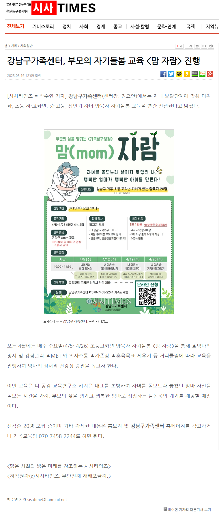 0316_강남구가족센터, 부모의 자기돌봄 교육-맘자람 진행_시사타임즈.png