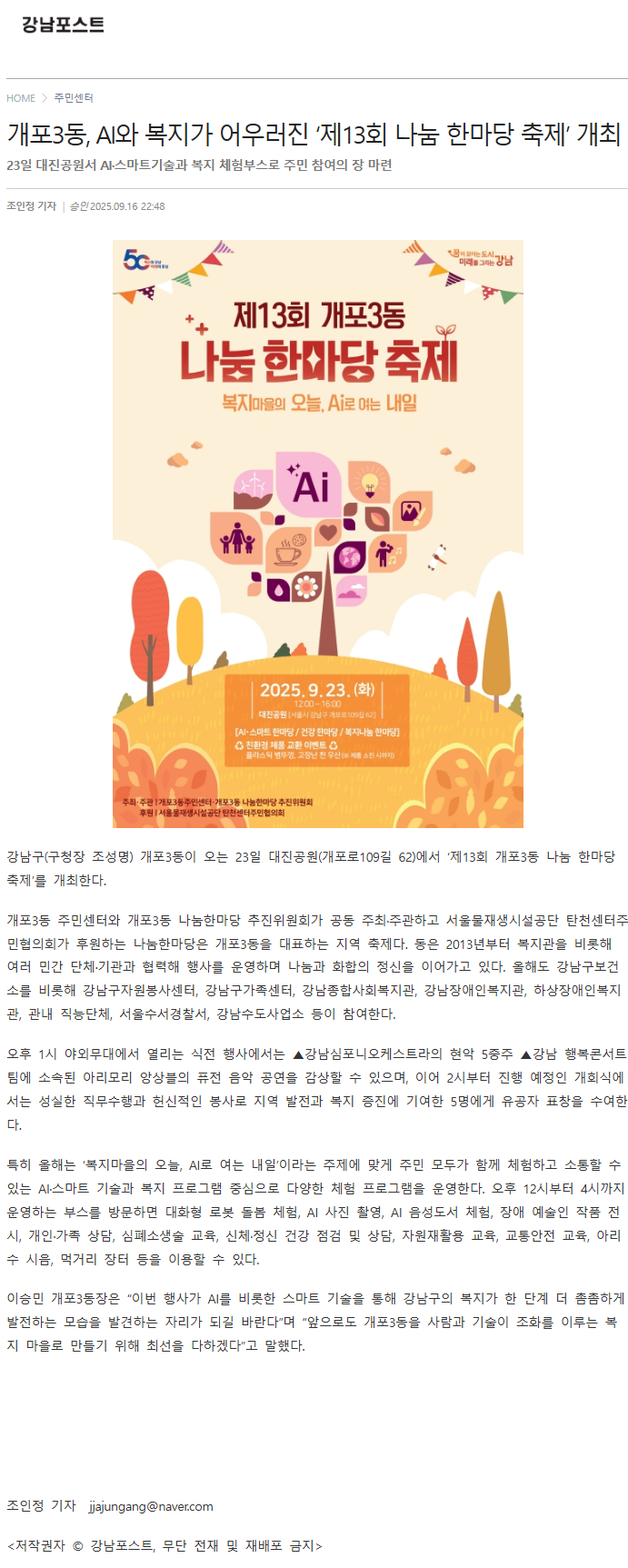 0916_개포3동, AI와 복지가 어우러진 ‘제13회 나눔 한마당 축제’ 개최_강남포스트(인터넷).png