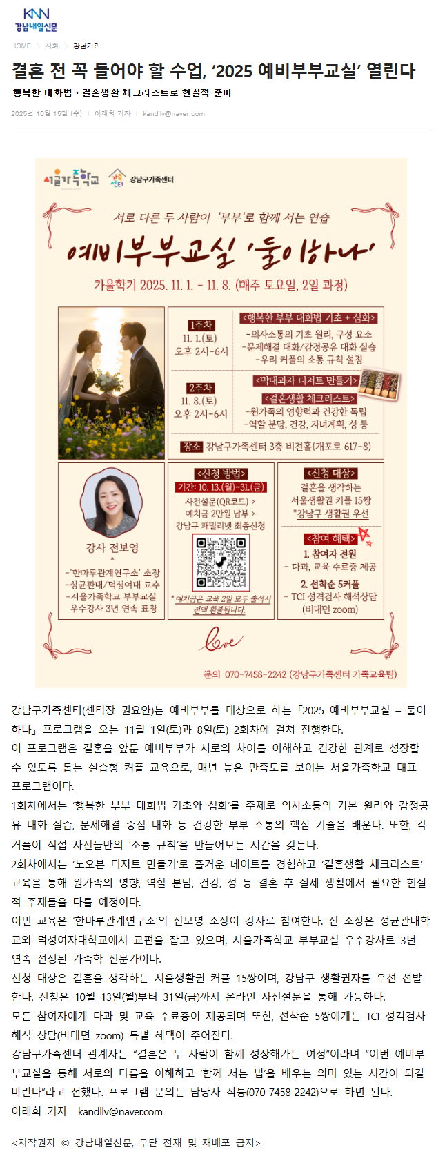 1015_결혼 전 꼭 들어야 할 수업, ‘2025 예비부부교실’ 열린다_강남내일신문(인터넷).png