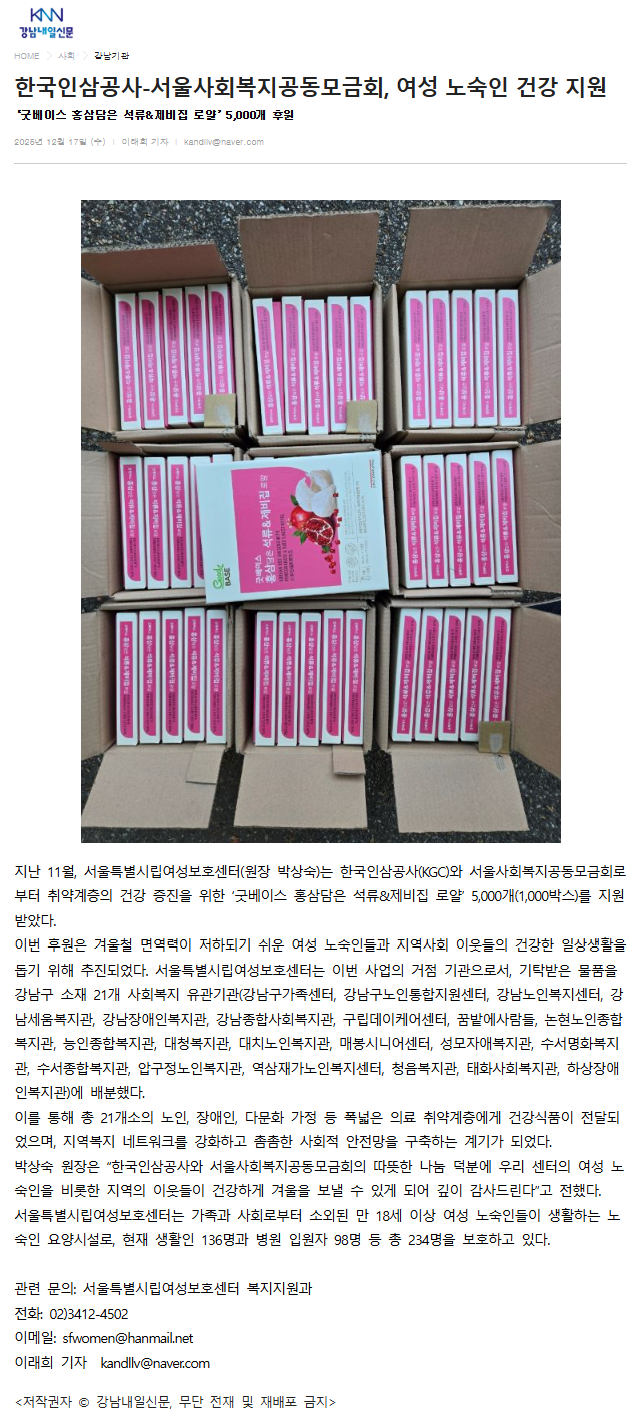1217_한국인삼공사-서울사회복지공동모금회, 여성 노숙인 건강 지원_강남내일신문(인터넷).png