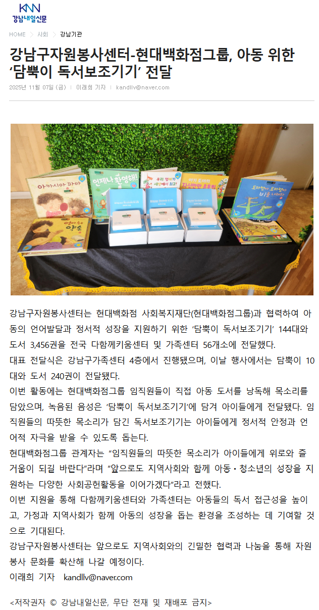 1107_강남구자원봉사센터-현대백화점그룹, 아동 위한 ‘담뿍이 독서보조기기’ 전달_강남내일신문(인터넷).png