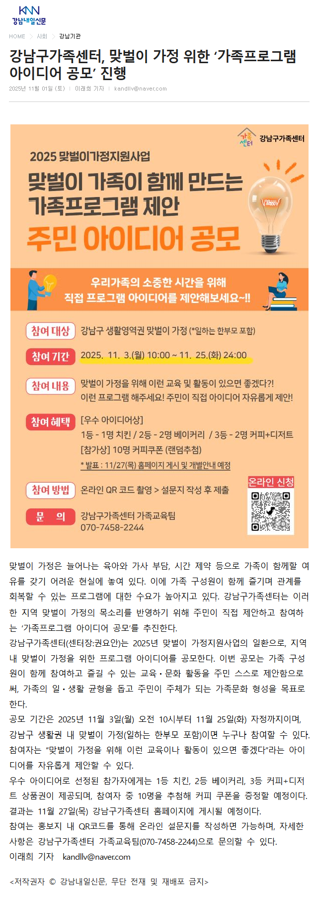 1101_강남구가족센터, 맞벌이 가정 위한 ‘가족프로그램 아이디어 공모’ 진행_강남내일신문(인터넷).png