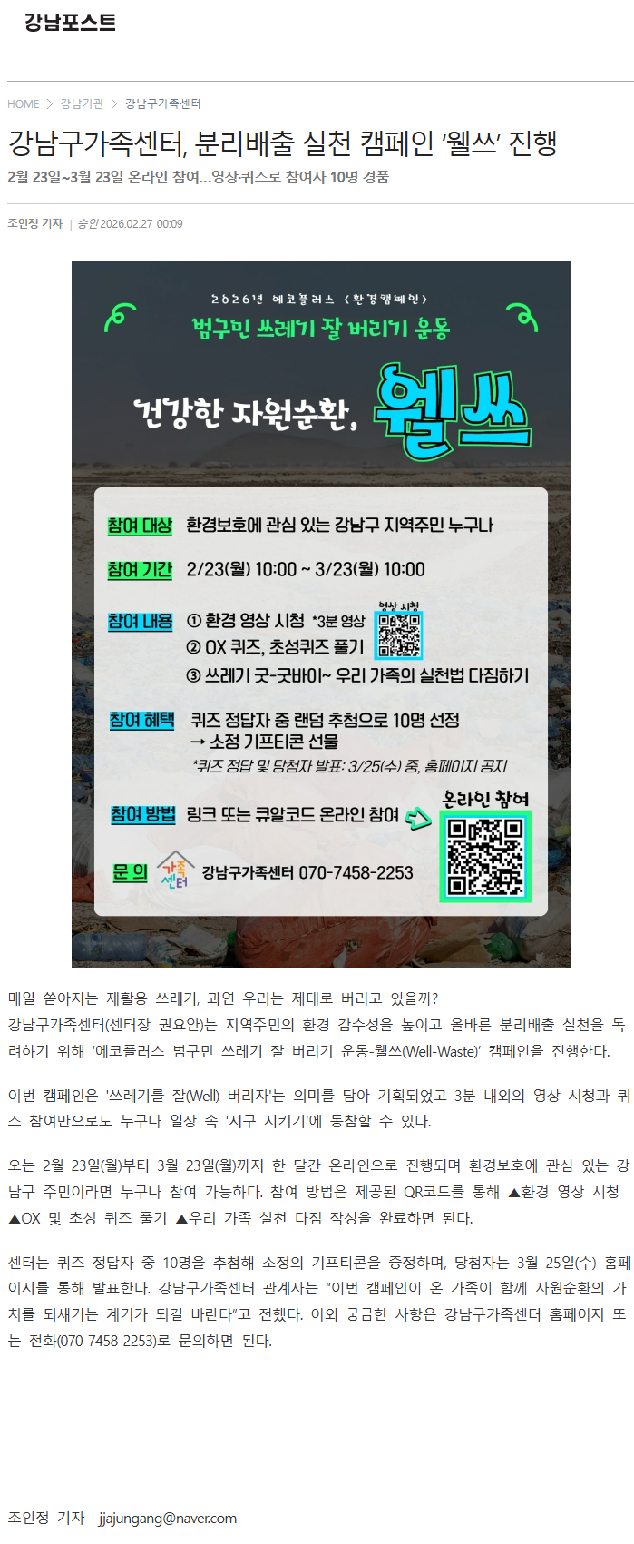 0227_강남구가족센터, 분리배출 실천 캠페인 웰쓰 진행_강남포스트(인터넷).png