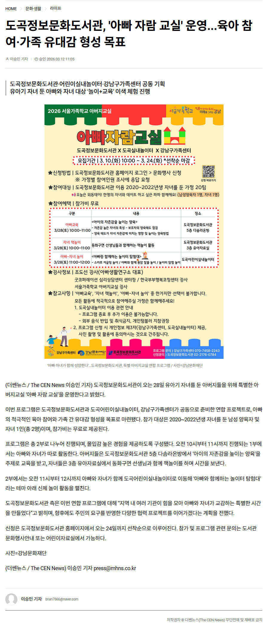 0312_도곡정보문화도서관, 아빠 자람 교실 운영...육아 참여 가족유대감 형성 목표_더쎈뉴스(인터넷).png