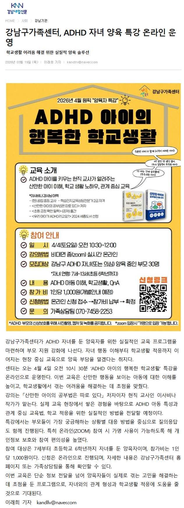 0319_강남구가족센터, ADHD 자녀 양육 특강 온라인 운영_강남내일신문(인터넷).png