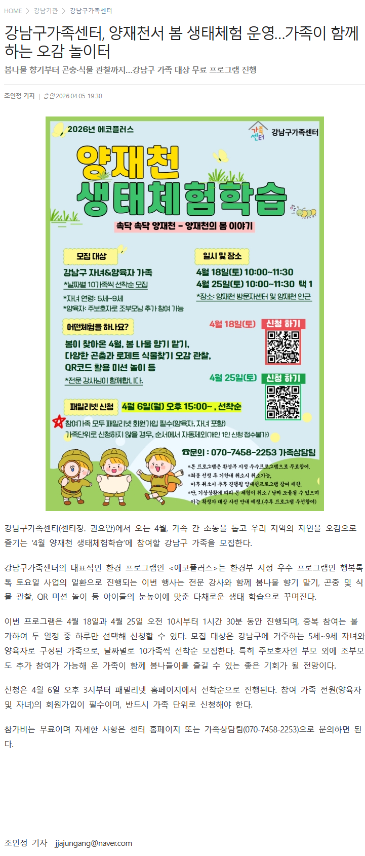 0405_강남구가족센터, 양재천서 봄 생태체험 운영...가족이 함께하는 오감 놀이터_강남포스트(인터넷).png