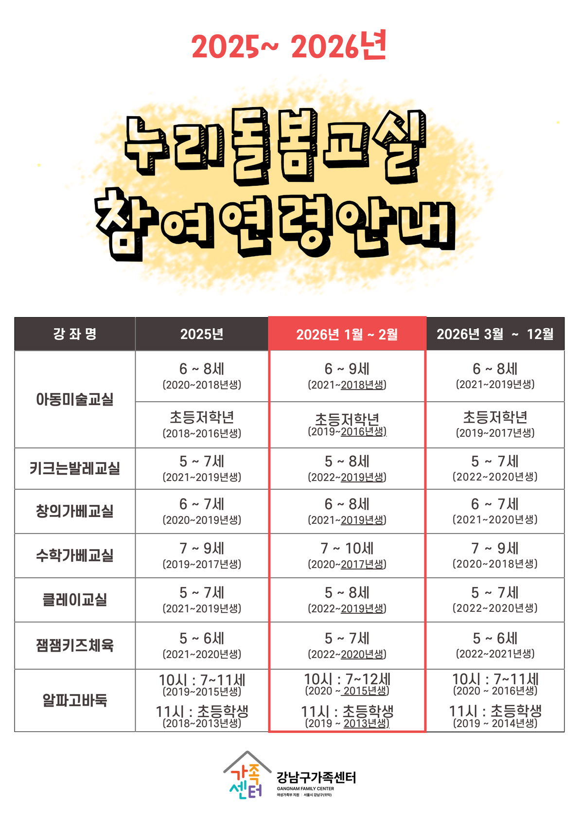 [누리돌봄교실 공지] ★2025~2026년 누리돌봄교실 참여연령안내