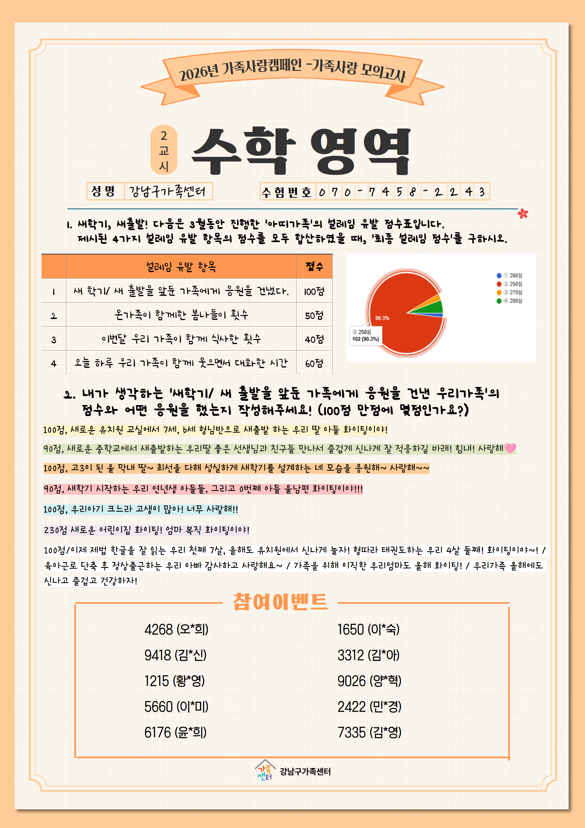가족사랑의날 3월 캠페인 모의고사 수학영역