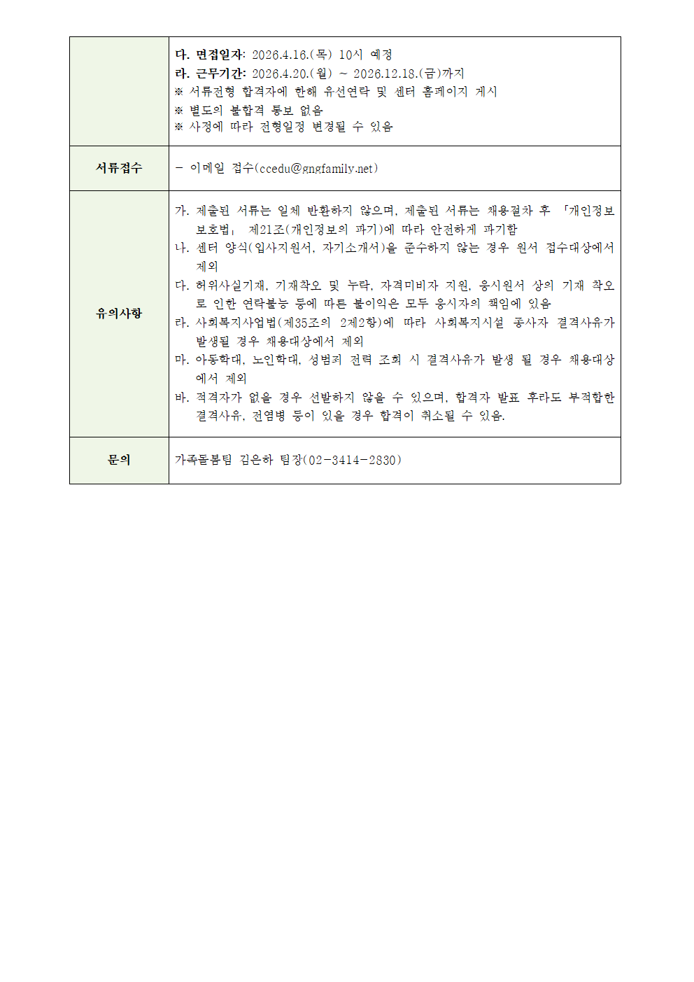 [공동육아나눔터] 2026년 공동육아나눔터 보조인력 면접결과 발표
