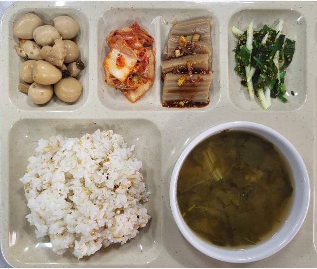 <중식 : 잡곡밥, 시래기된장국, 메추리알곤약조림, 도토리묵&양념장, 해초무침, 배추김치>