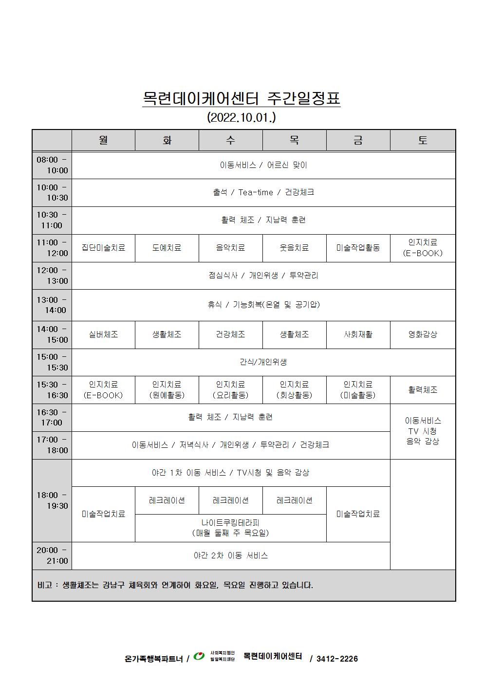 목련데이케어센터 9월 26일 중식, 석식 안내입니다.