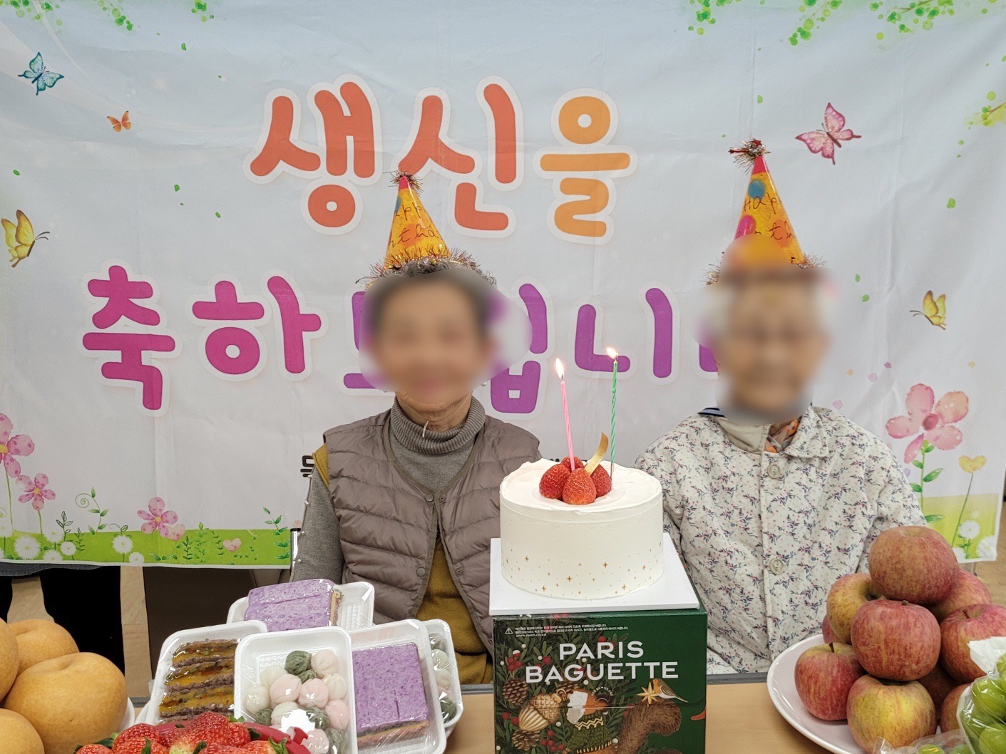 목련데이케어센터에서는 12월 생신을 맞이 하신 최o례, 오o균어르신을 모시고 생신잔치를 진행하였습니다.