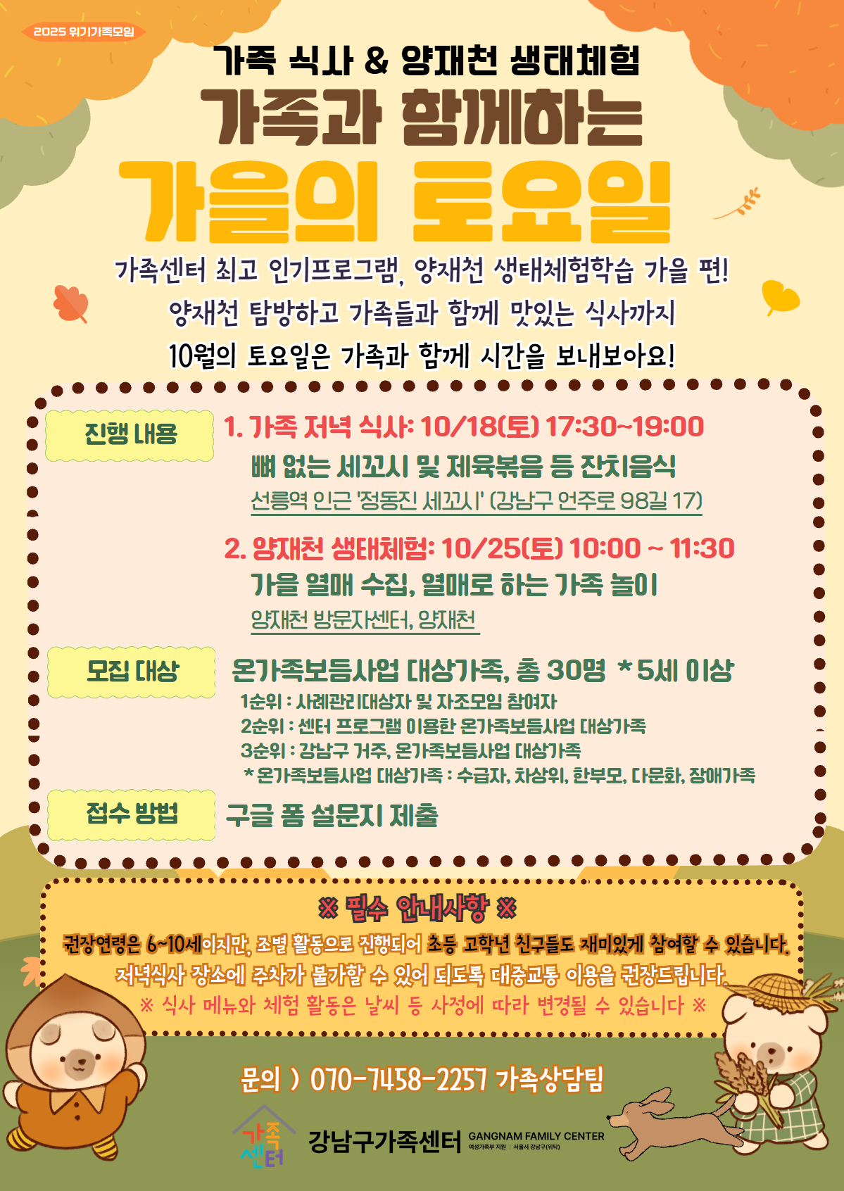 ◎ 문의사항: 070-7458-2257 가족상담팀 김리아
