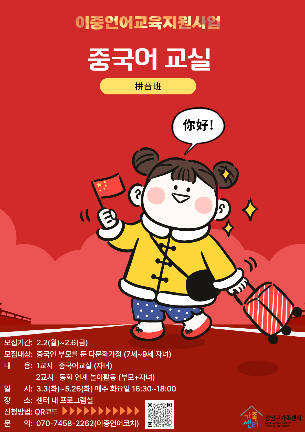 ☆ 모집대상: 중국인 부모를 둔 다문화가정(7세~9세 자녀)