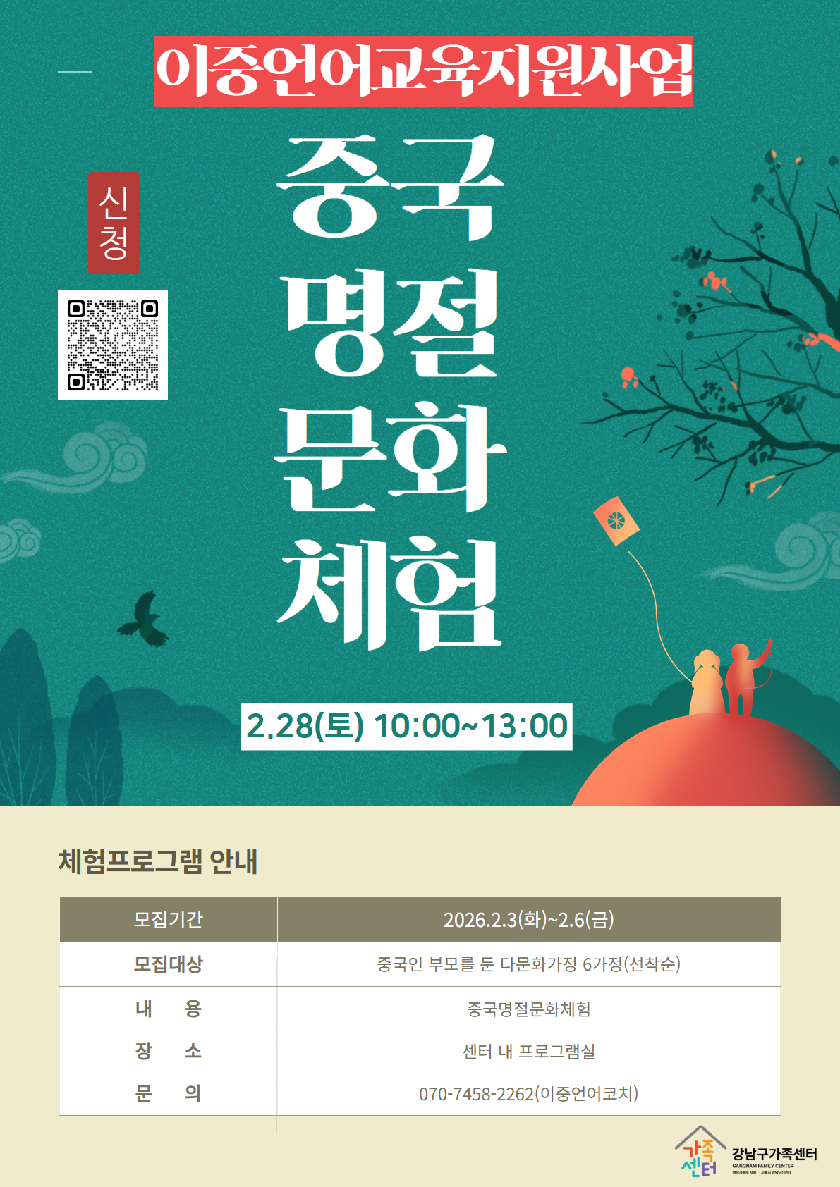 ☆ 모집대상: 중국인 부모를 둔 다문화가정(6가정)