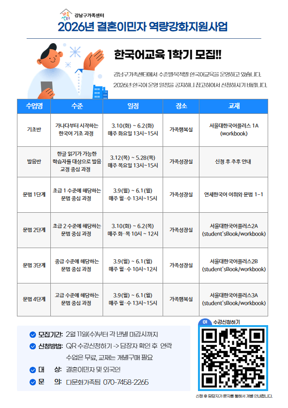 ☎문의: 070-7458-2265 (다문화가족팀)