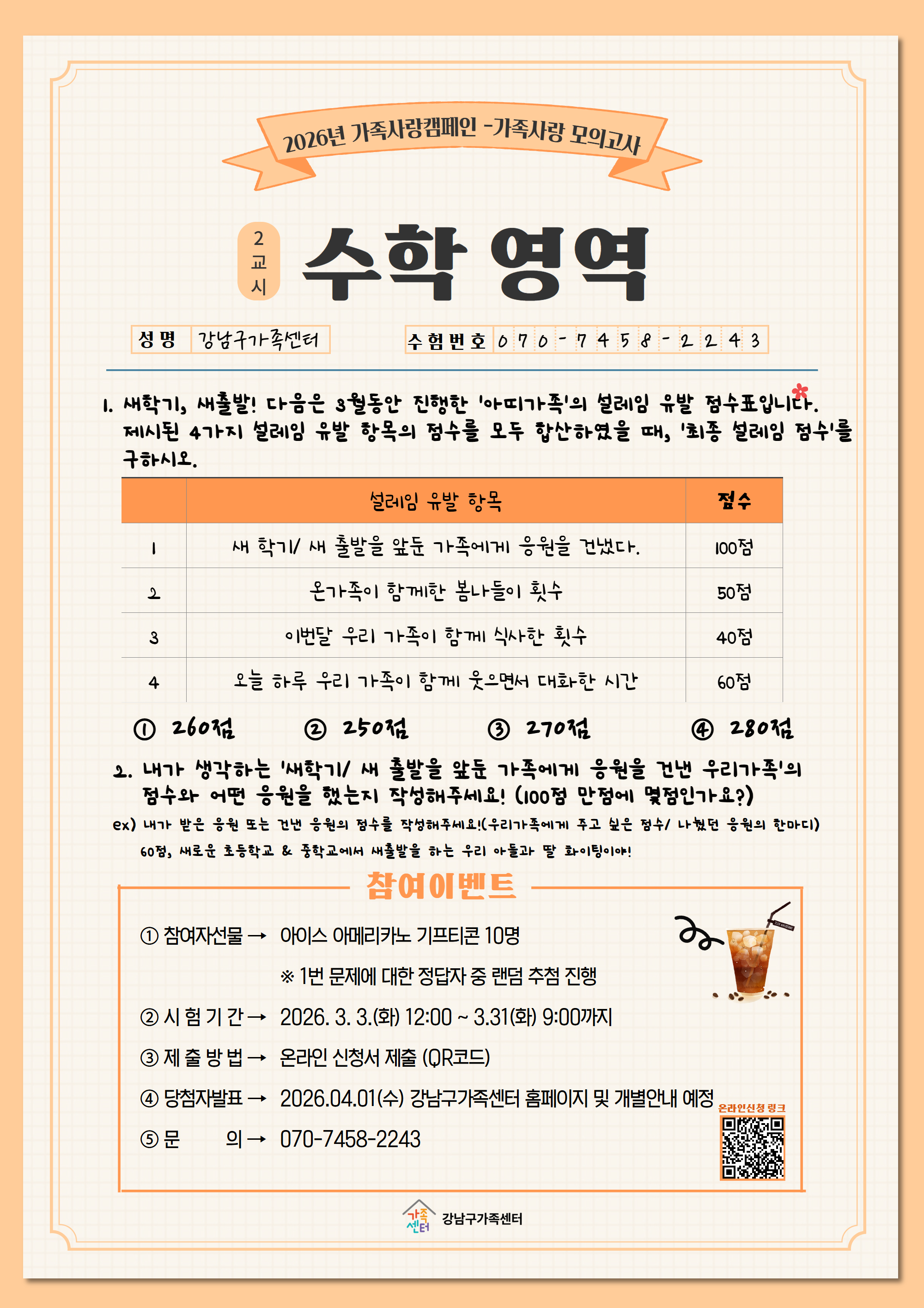 2026 3월 가족사랑 캠페인 <가족사랑 모의고사: 수학 영역 >