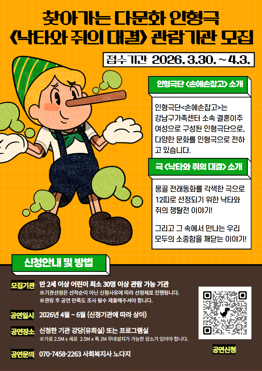 ![[다문화 인식개선 사업] 2026 찾아가는 다문화 인형극 [낙타와 쥐의 대결] 관람 기관 모집 전자점자뷰어보기](/assets/images/common/braille_btn.png)