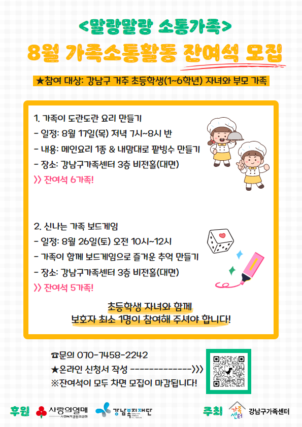 - 참여대상: 초등학생 자녀와 가족