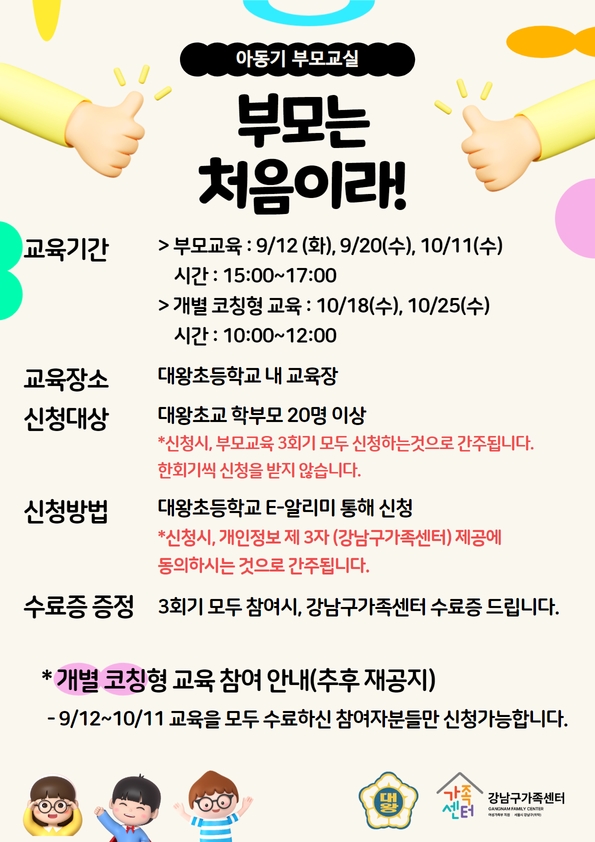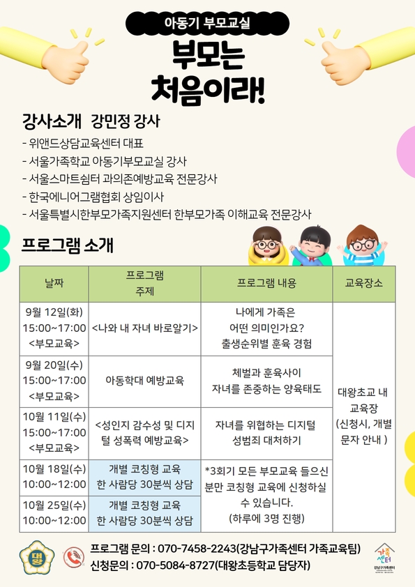 [서울가족학교] 아동기부모교실[부모는 처음이라!] (w. 서울대왕초등학교)