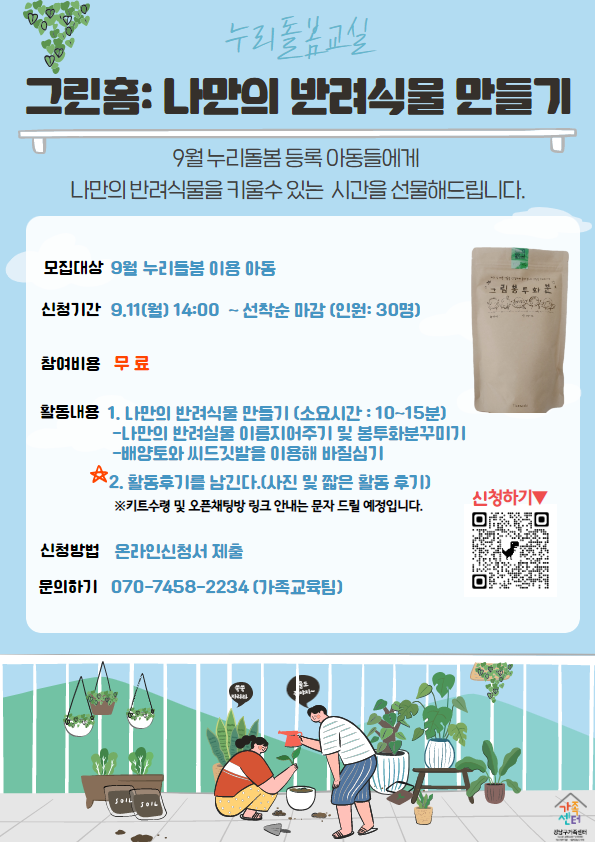 1. 모집대상 : 9월 누리돌봄교실 이용 아동 (선착순 30명)