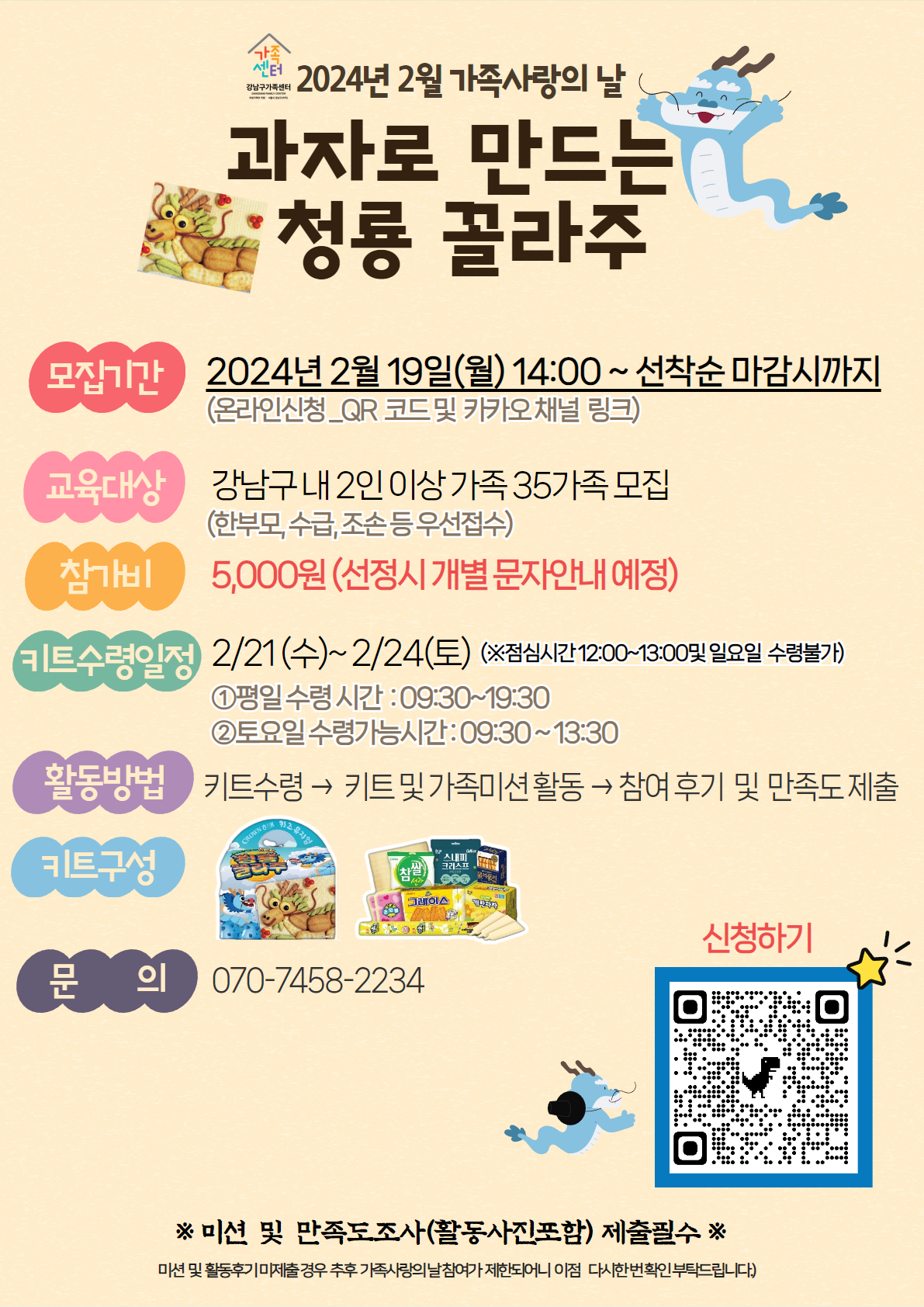 2024년 갑진년해를 맞아 2월 가족사랑의 청룡과 관련된 활동을 준비하였습니다.