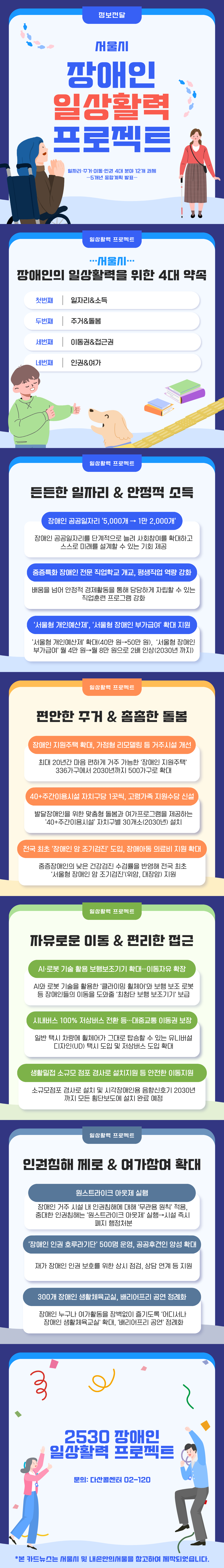 서울시 장애인 일상활력 프로젝트-일자리, 주거, 이동, 인권 4대 분야 12개 과제 5개년 종합계획 발표